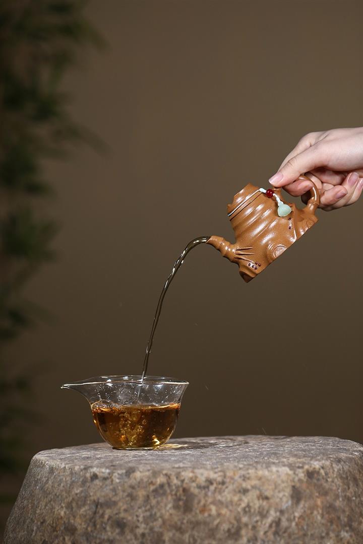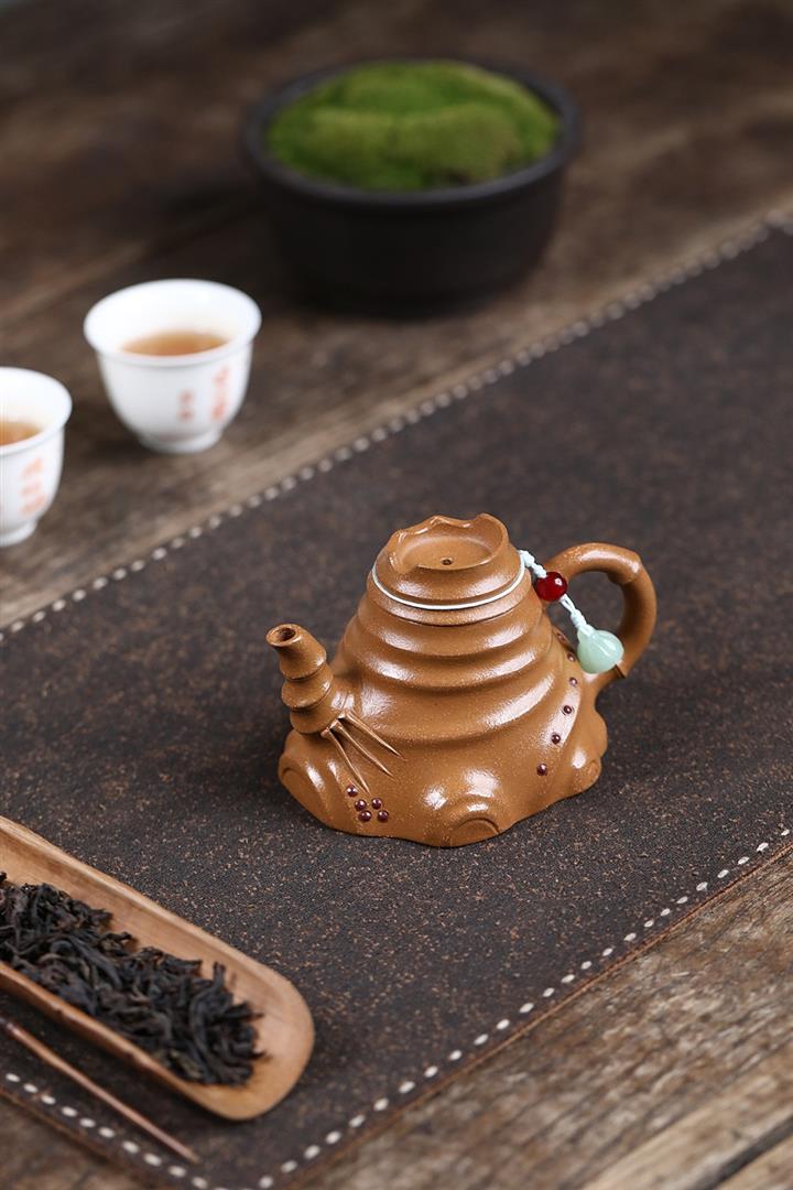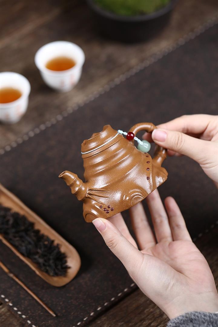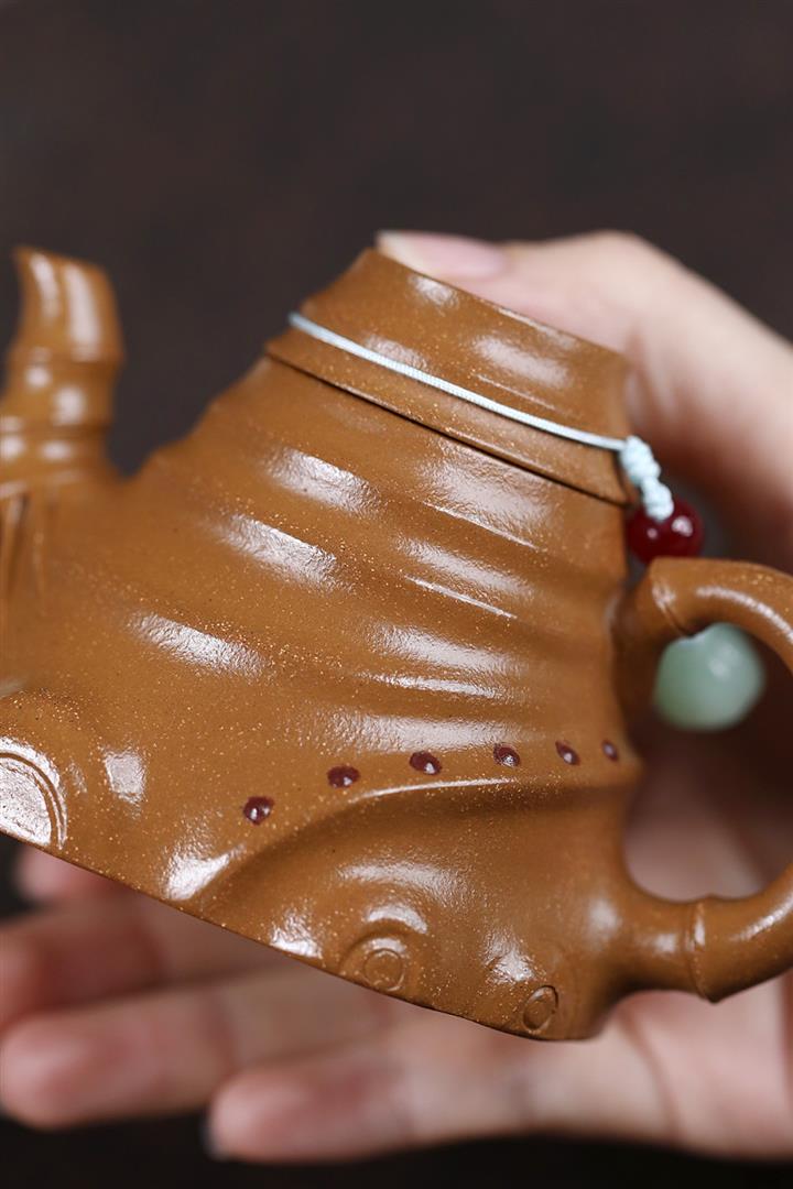 【泥料特點】透氣性好,光澤沈穩‌,日久使用,漸露鋒芒,養成變化甚大,溫潤莊重。線條優美自然嘴把搭配協調,身桶配上細長的把搭配,更顯優雅.
