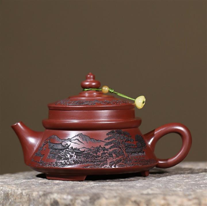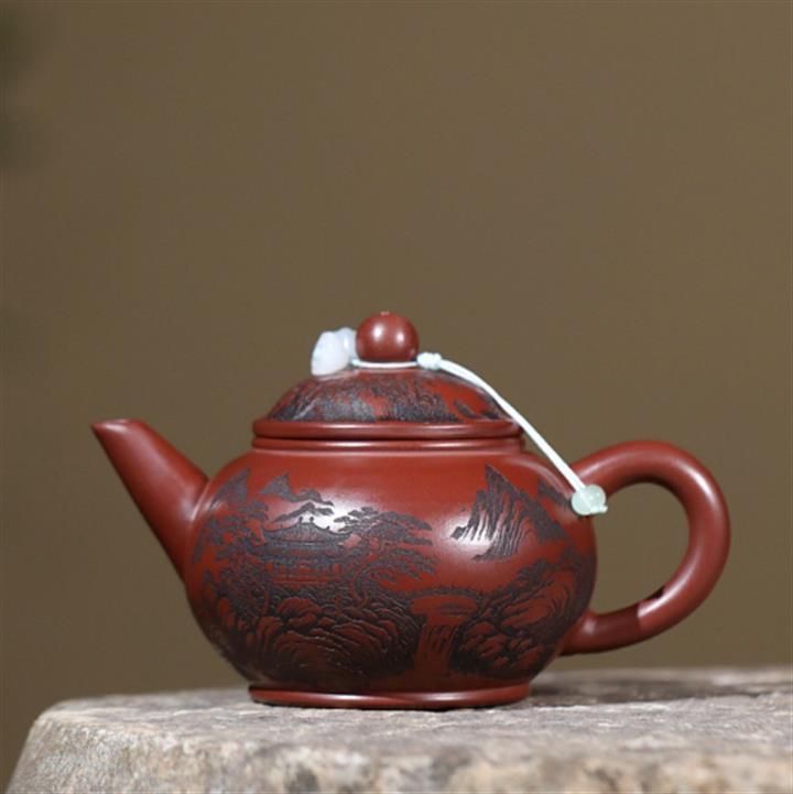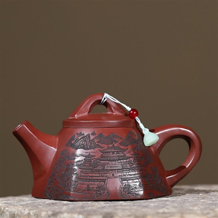 原礦龍血砂手工滿刻寶塔茶壺POT6768