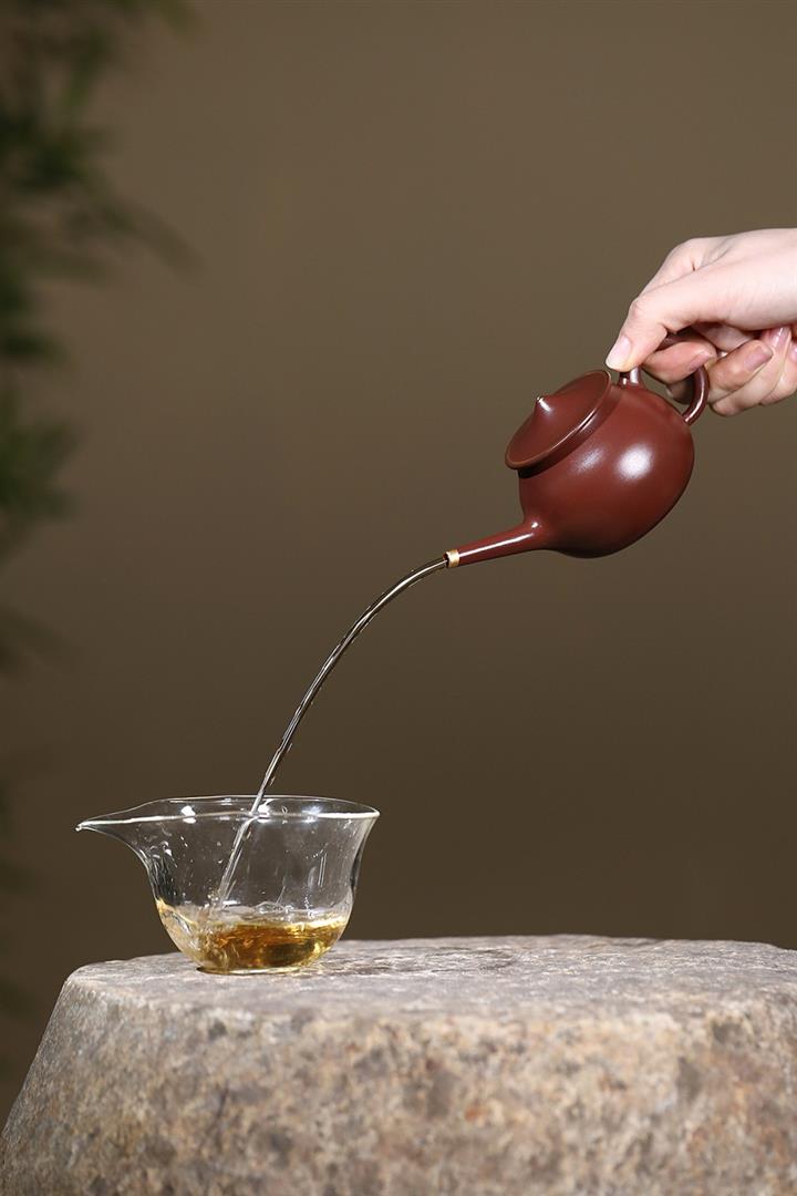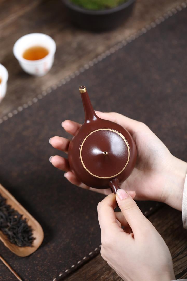 【泥料特點】透氣性好,光澤沈穩‌,日久使用,漸露鋒芒,養成變化甚大,溫潤莊重。線條優美自然嘴把搭配協調,身桶配上細長的把搭配,更顯優雅.