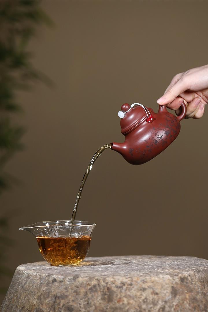 原礦大紅袍手工蓮花汲直茶壺POT6771