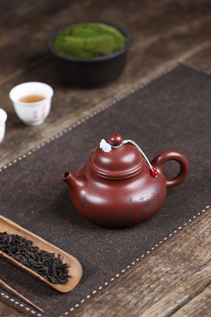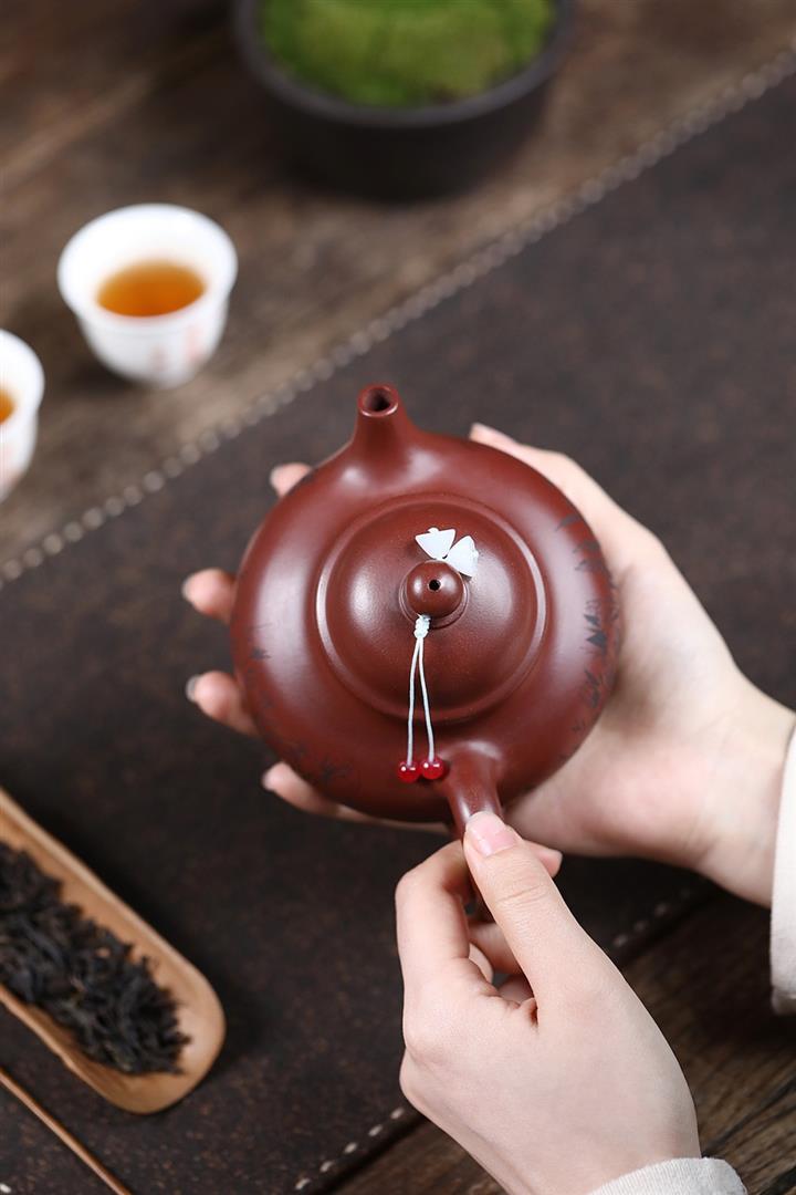 原礦龍血砂手工紅梅扁鼓茶壺POT6766