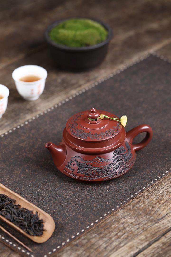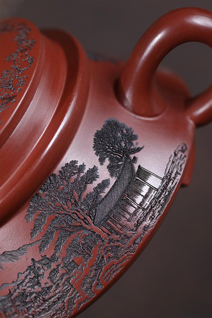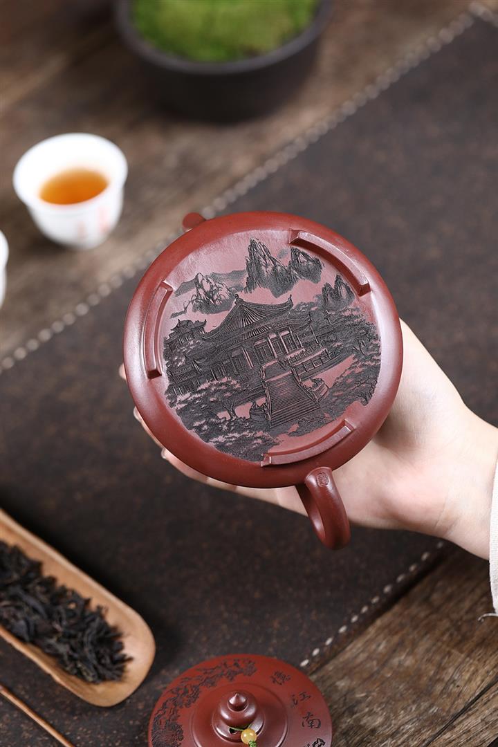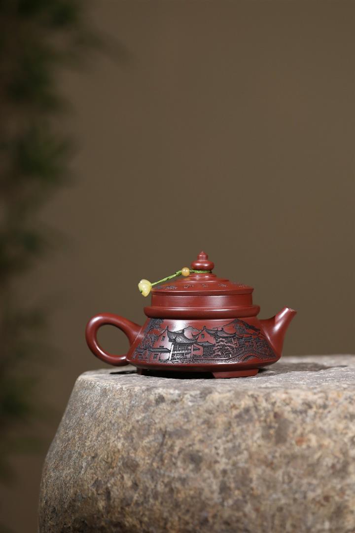 原礦龍血砂手工觀山水平茶壺POT6769