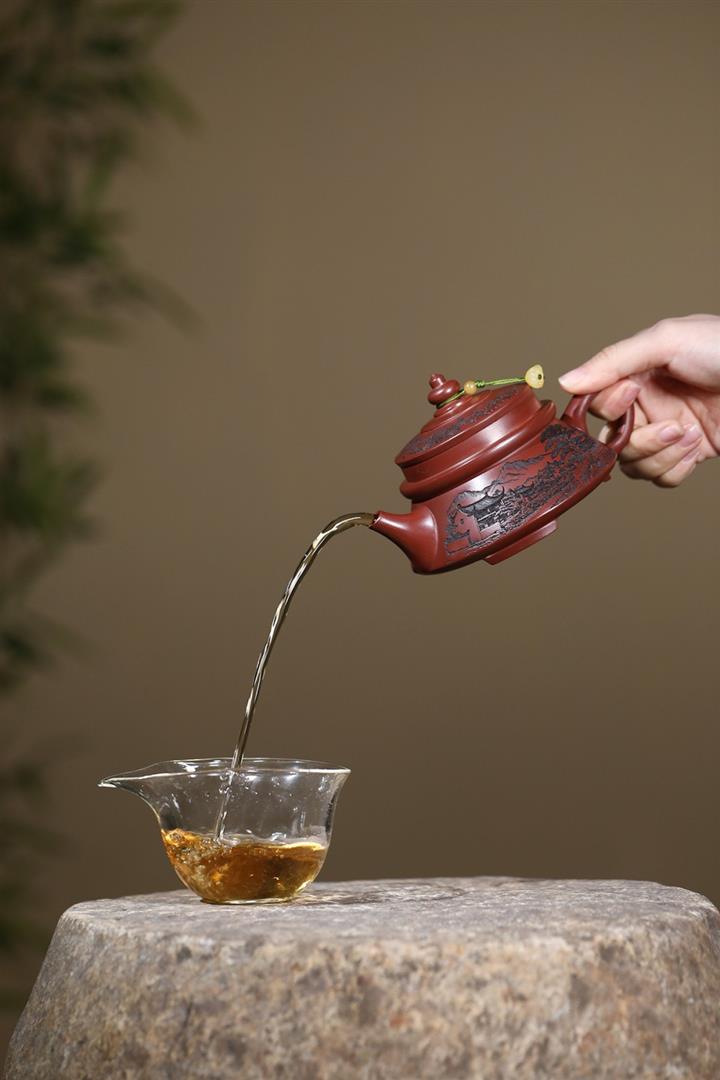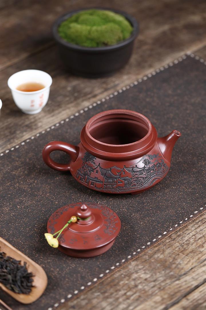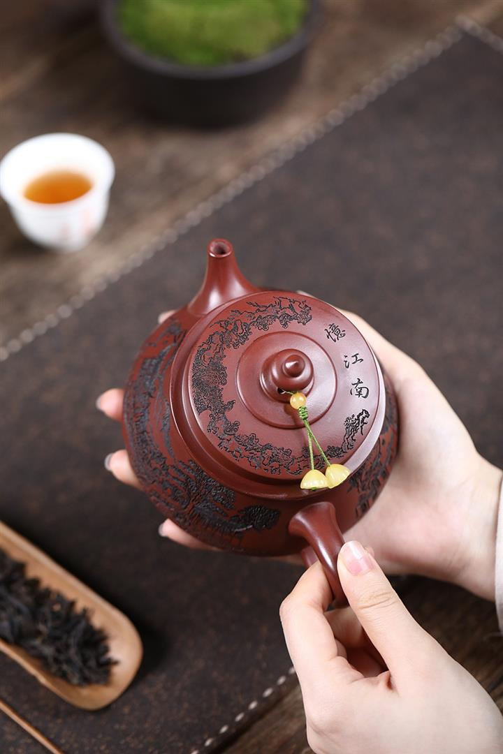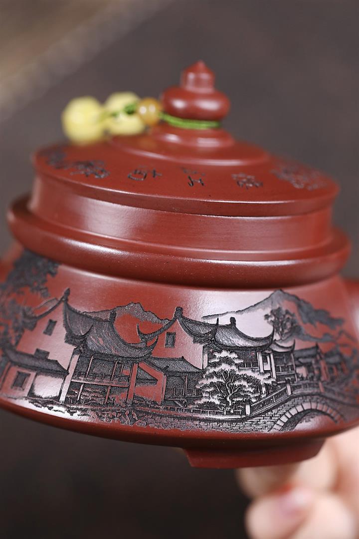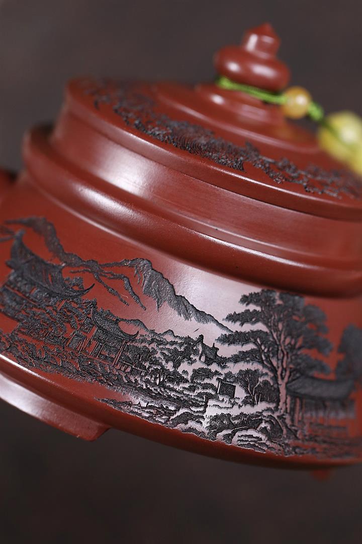 原礦龍血砂手工觀山水平茶壺POT6769