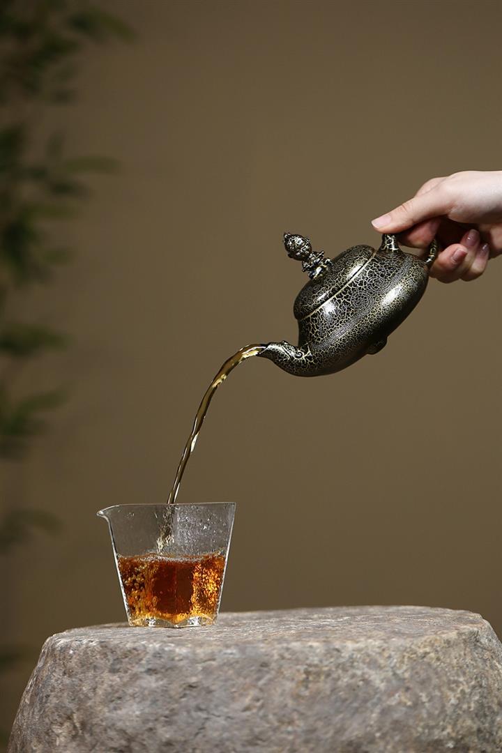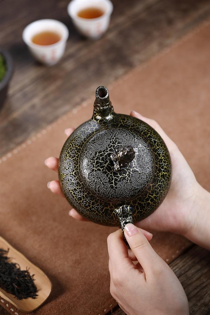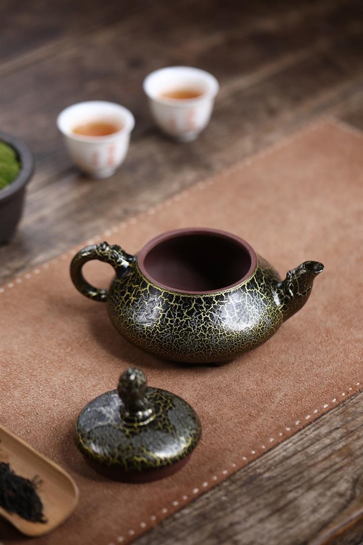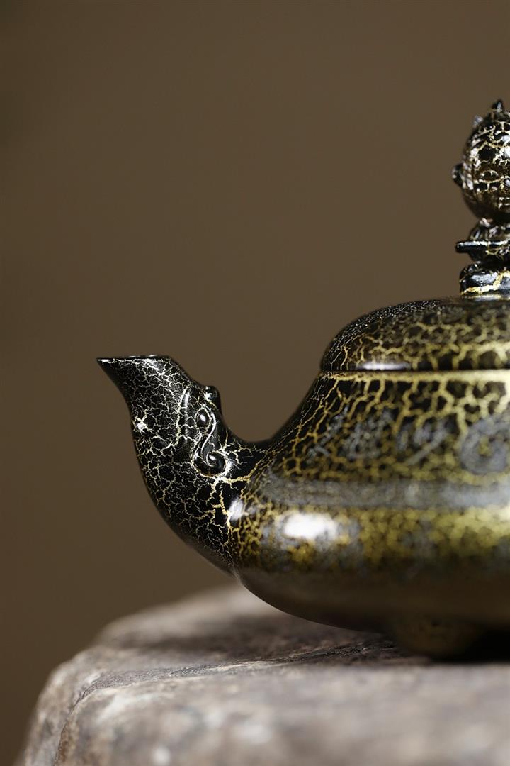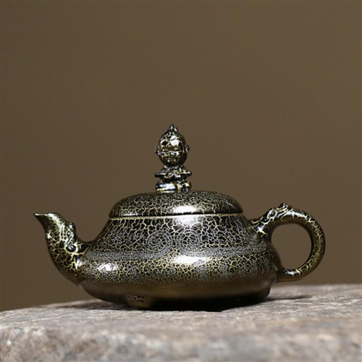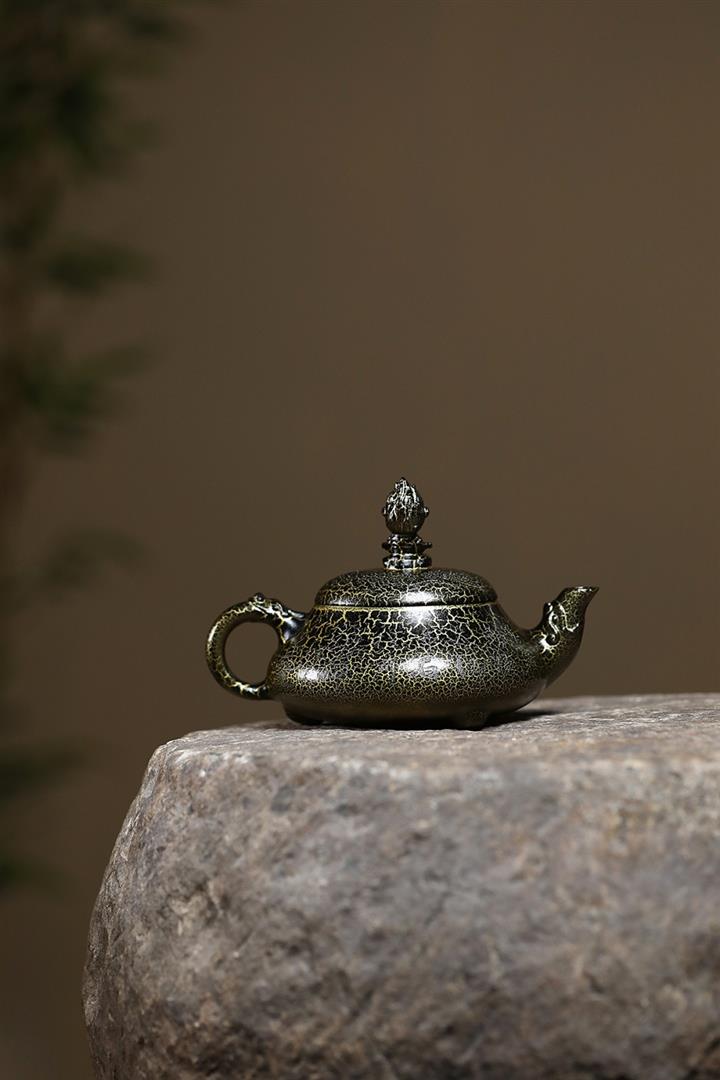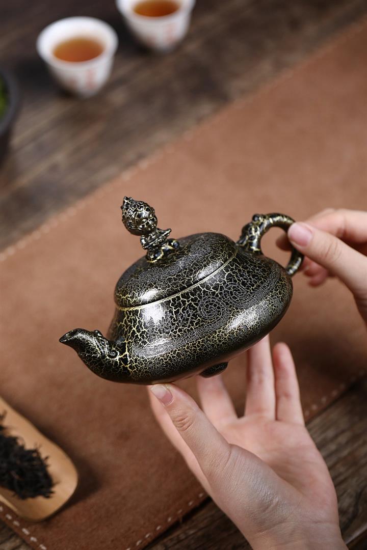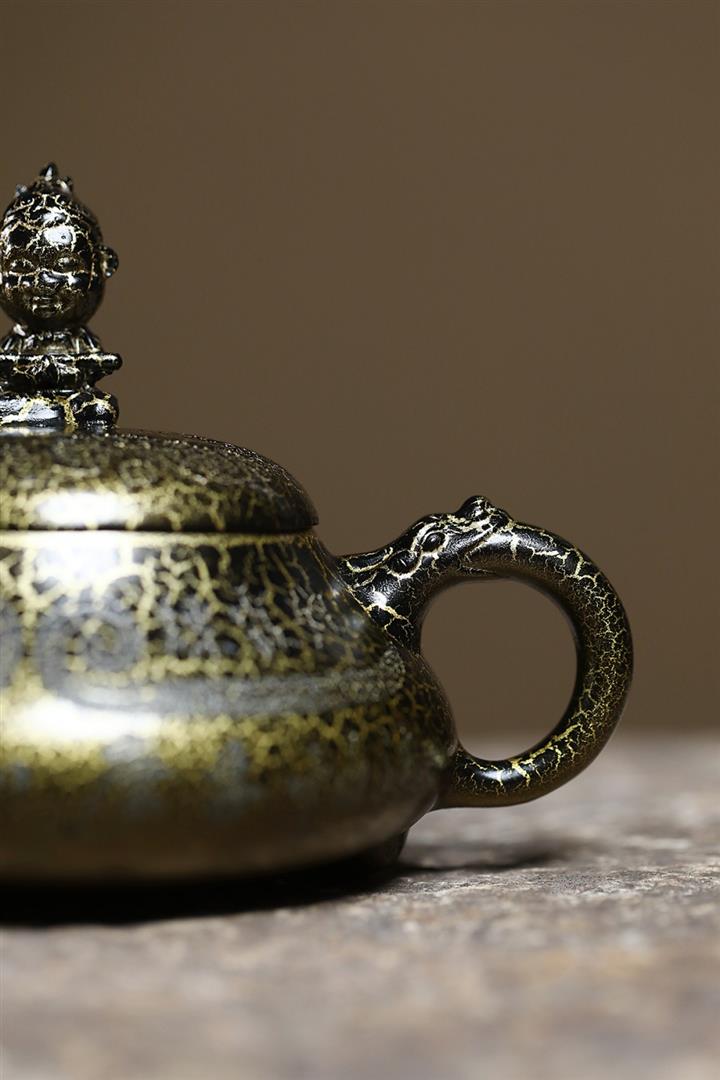 原礦黑金砂手工蛇紋鎏金刻繪龍燈茶壺POT6774