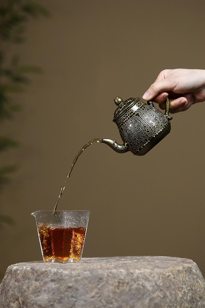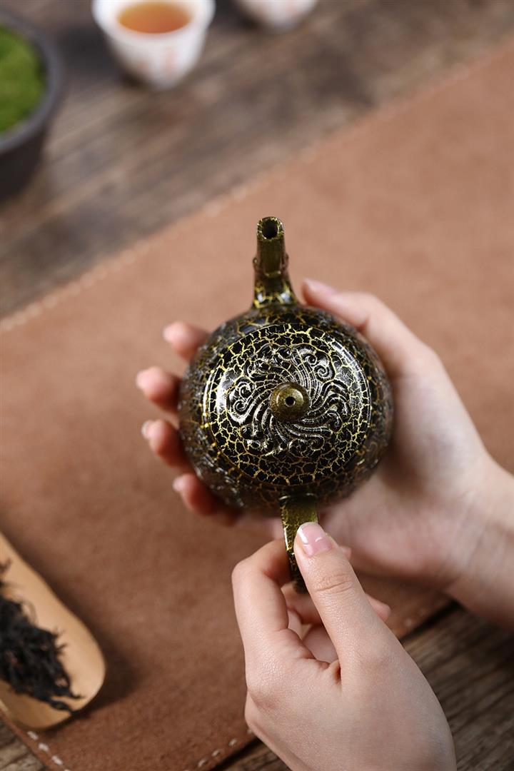 原礦黑金砂手工蛇紋鎏金刻繪龍燈茶壺POT6774