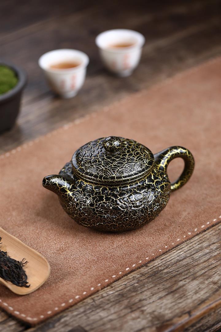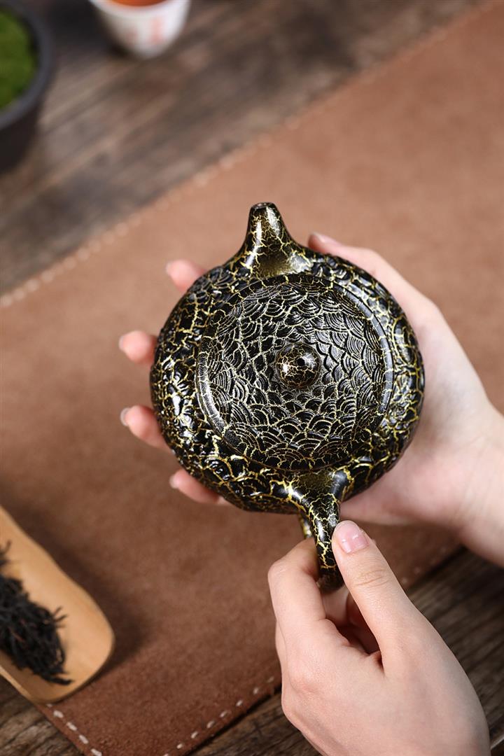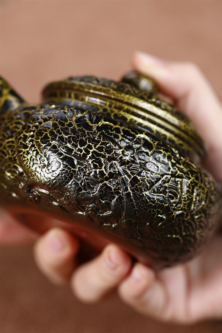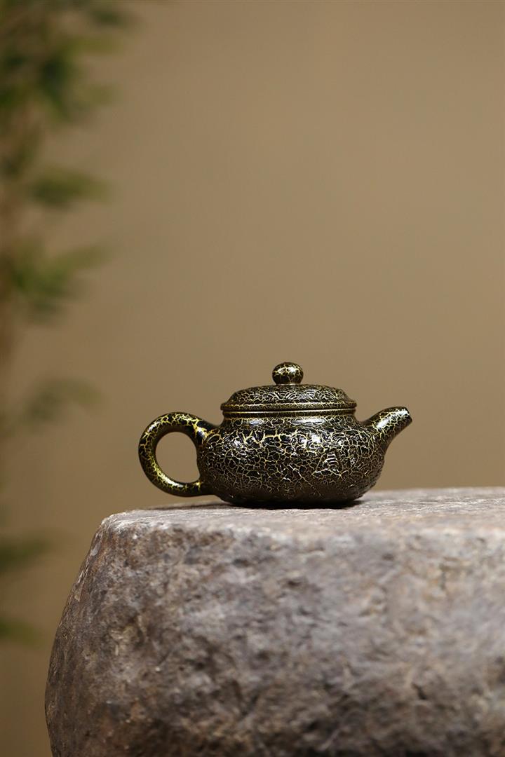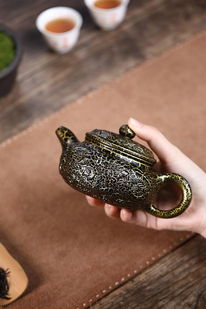 原礦大紅袍手工蛇紋鎏金龍紋壺POT6775