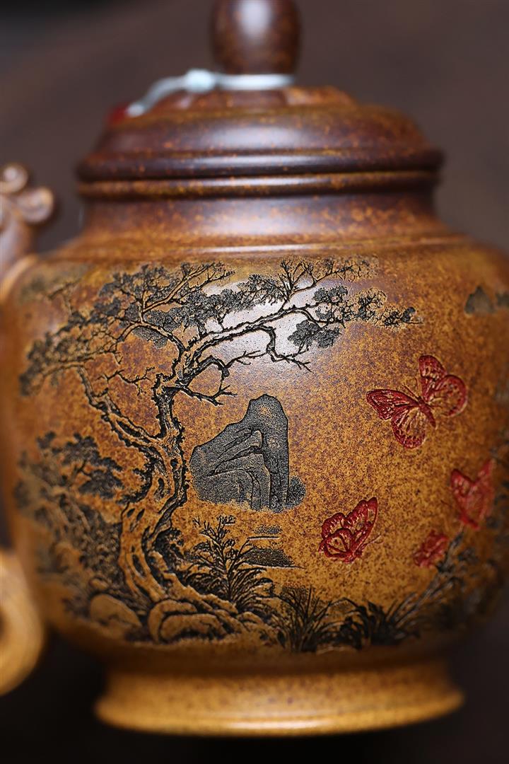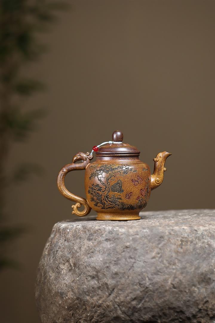 原礦黃段手工貼花葫蘆茶壺POT6783