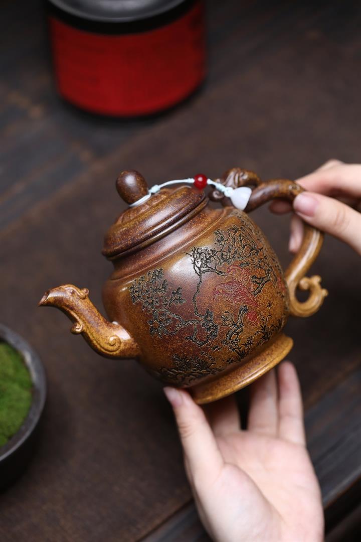 原礦石黃泥手工仙鶴延年漢瓦茶壺POT6778