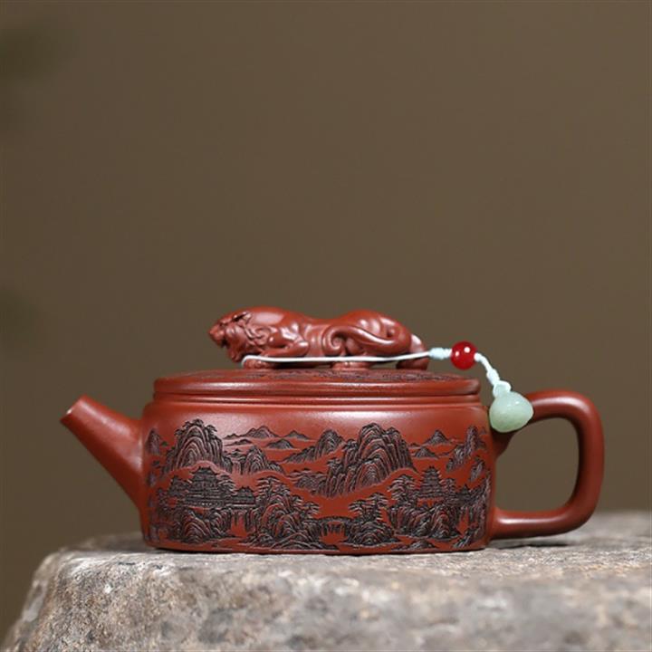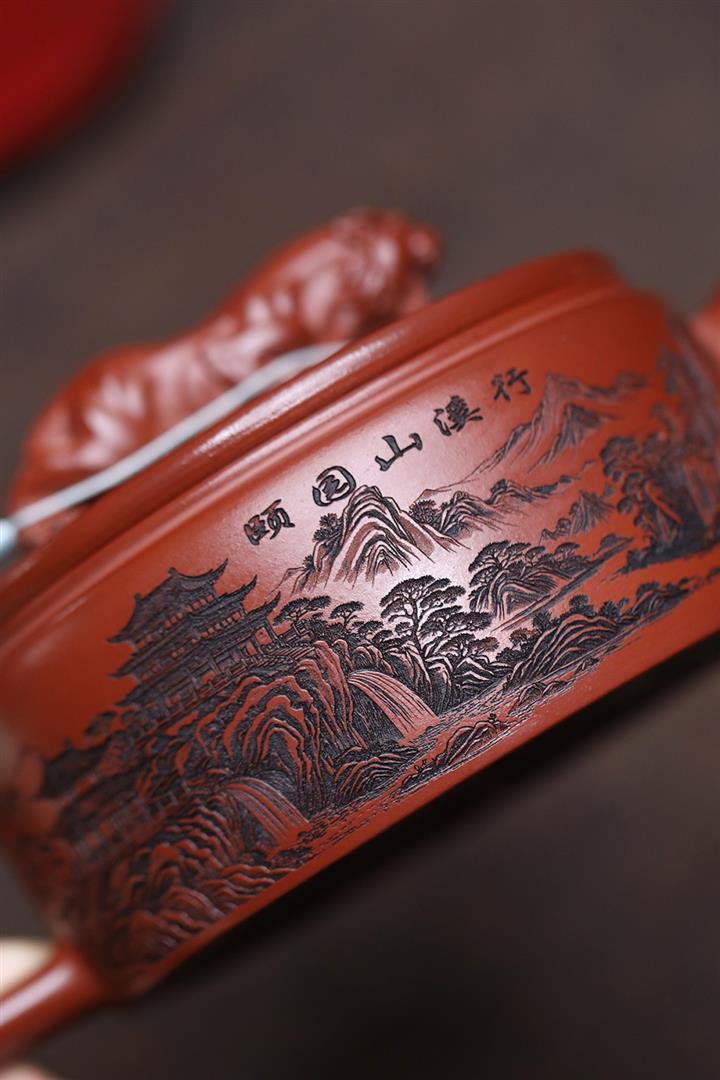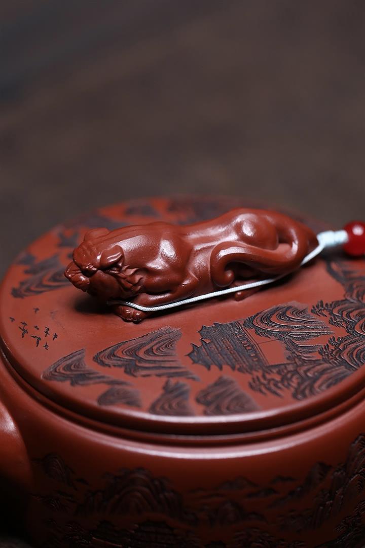 原礦紫泥手工泥繪虎嘯山河茶壺POT6785