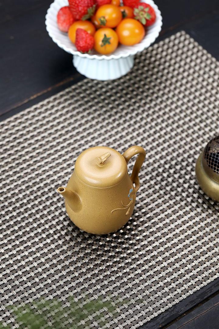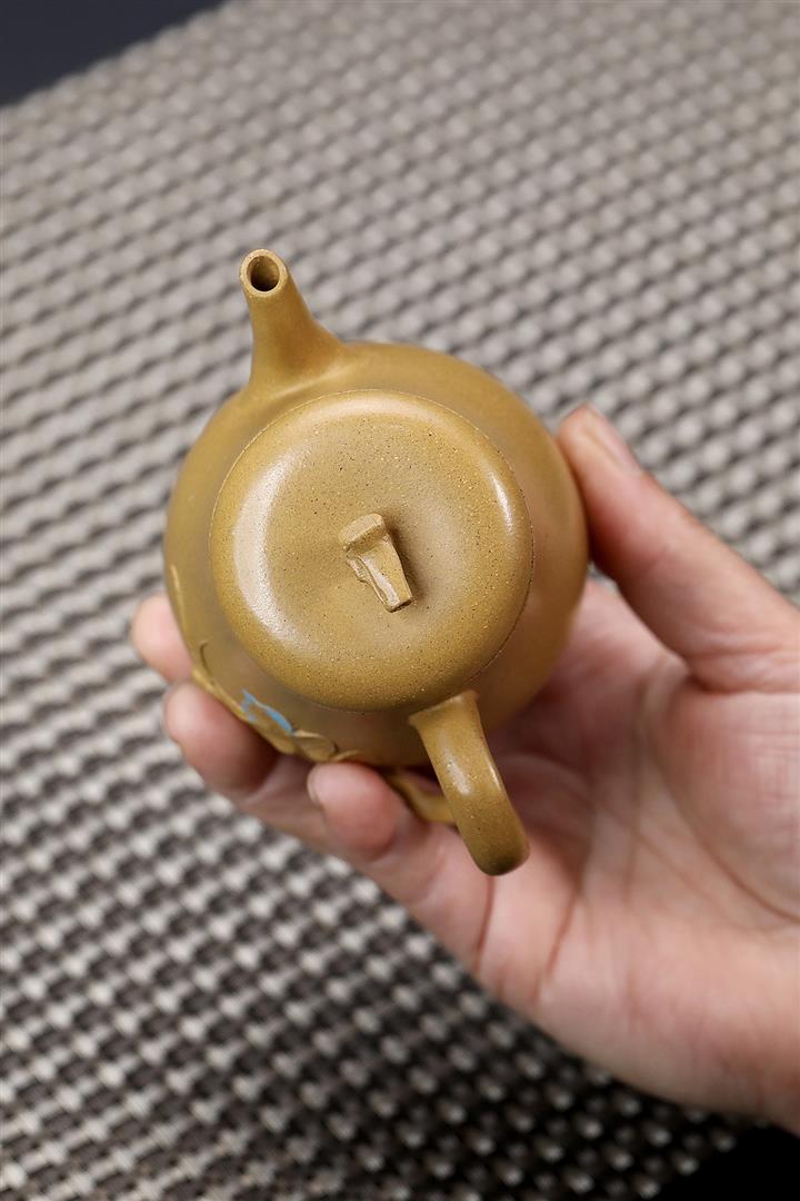原礦黃段手工貼花葫蘆茶壺POT6783