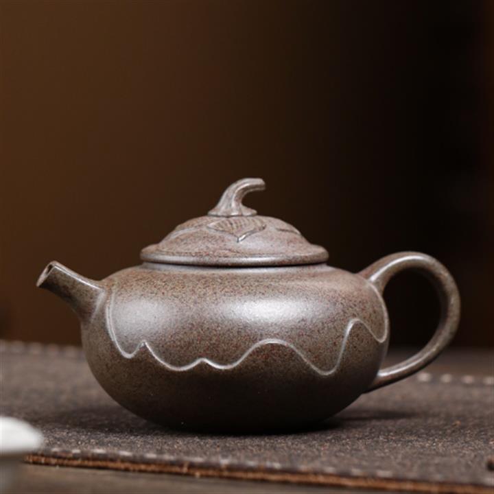原礦本山綠泥手工泥繪閑魚茄瓜茶壺POT6786
