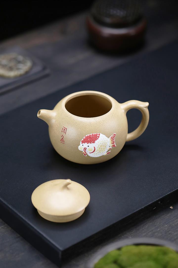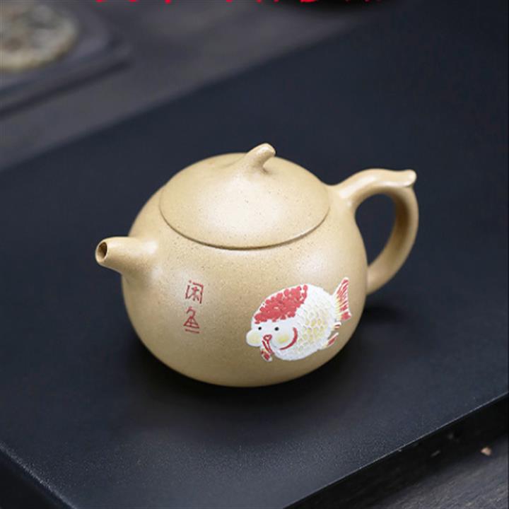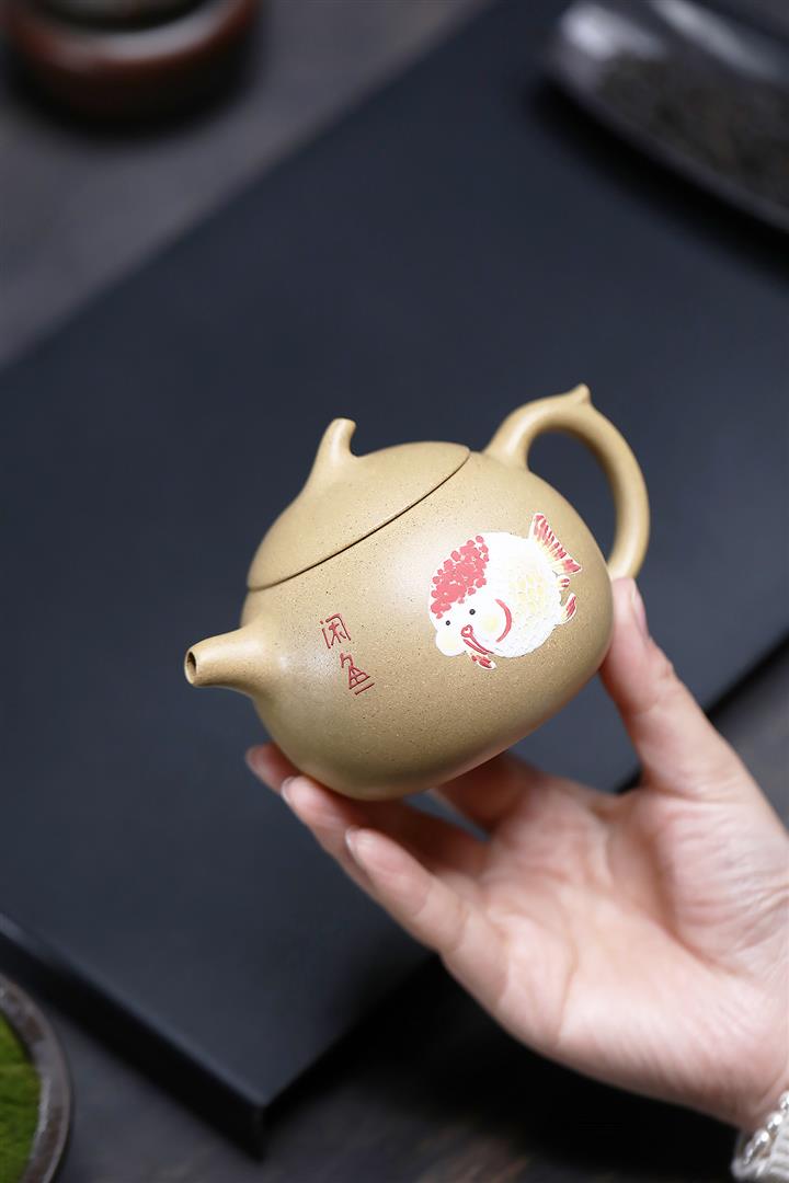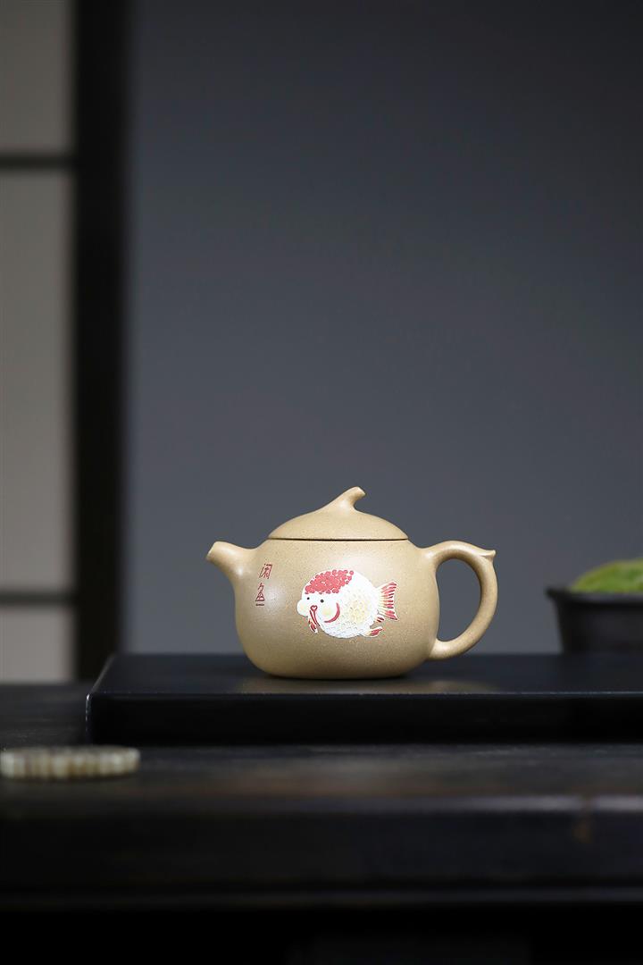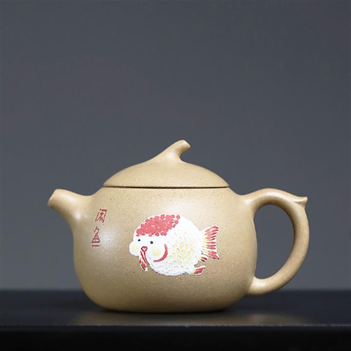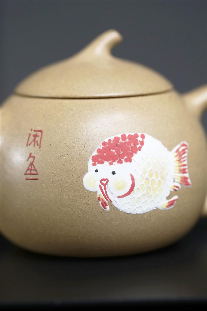 原礦本山綠泥手工泥繪閑魚茄瓜茶壺POT6786