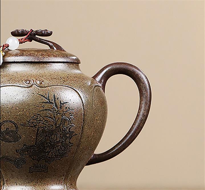 原礦粉泥純手工描金琺瑯寒江茶壺POT6796