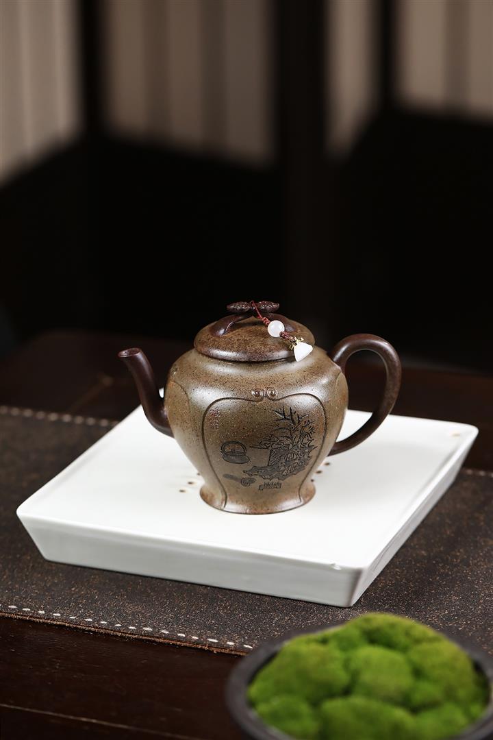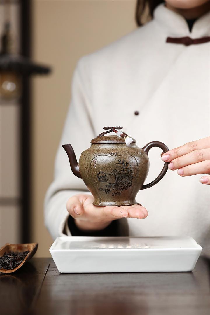 原礦本綠手製松枝漢瓦茶壺POT6795