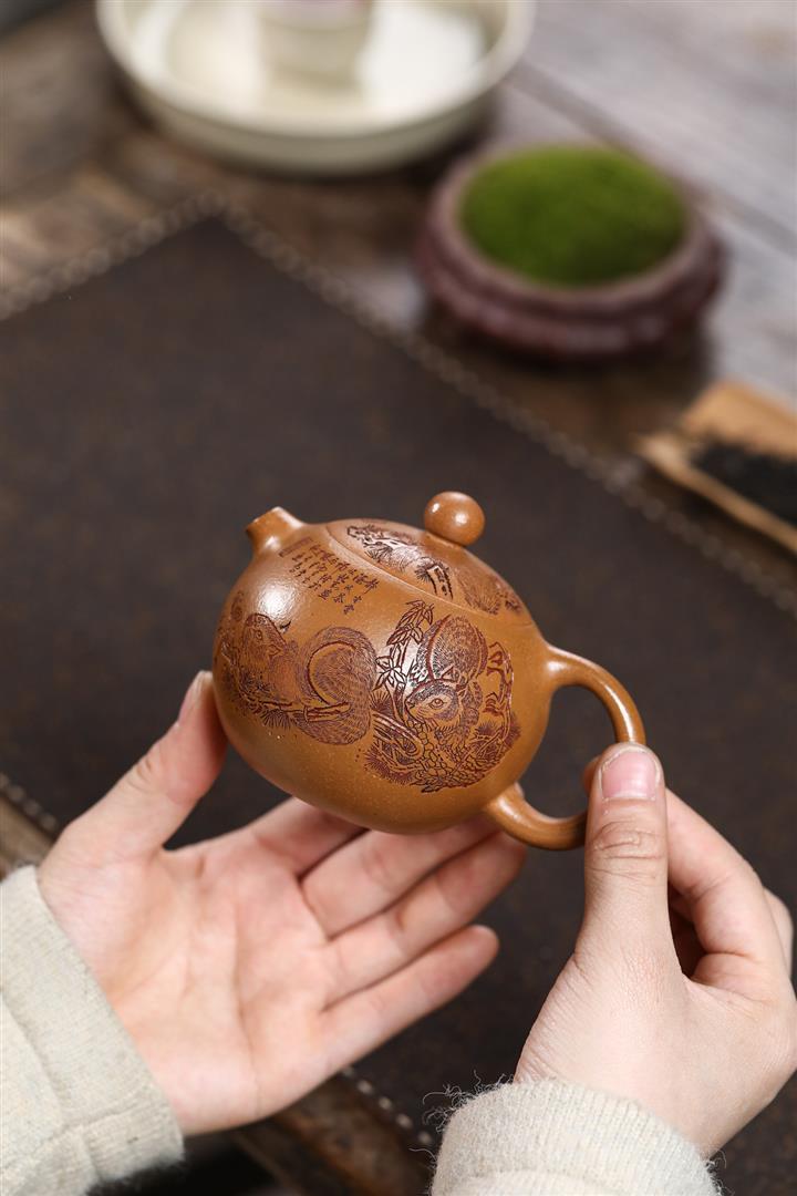 原礦紅皮龍手製仿生蘋果茶壺POT6794