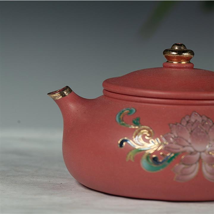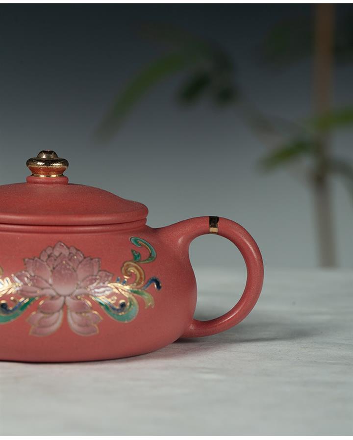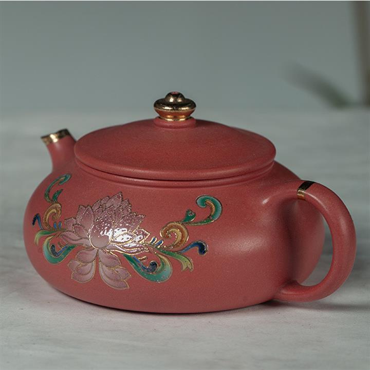 原礦粉泥純手工描金琺瑯寒江茶壺POT6796
