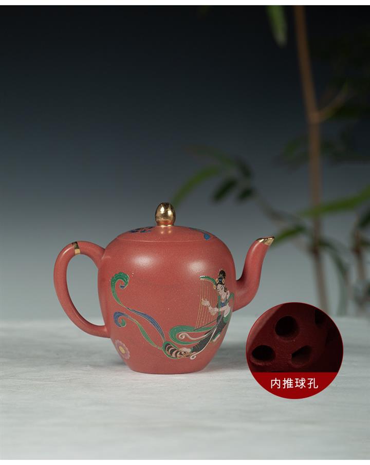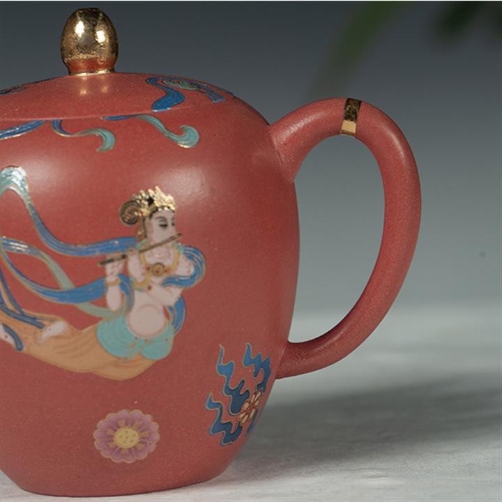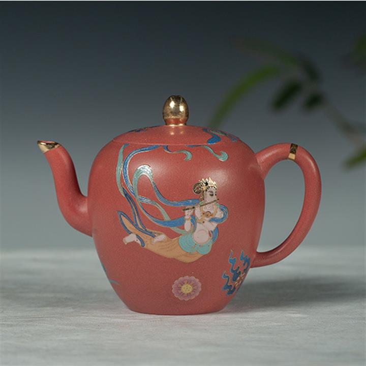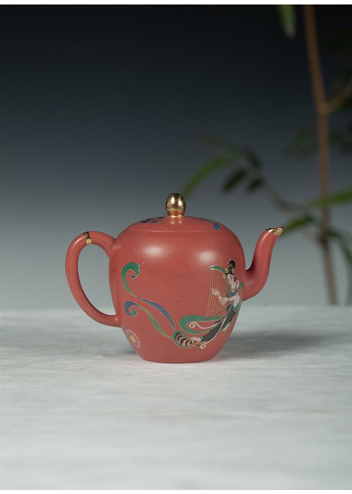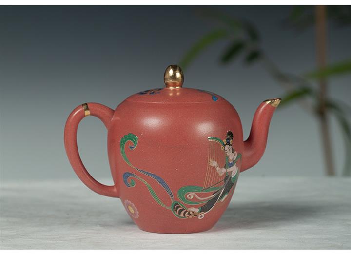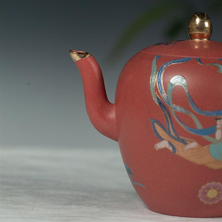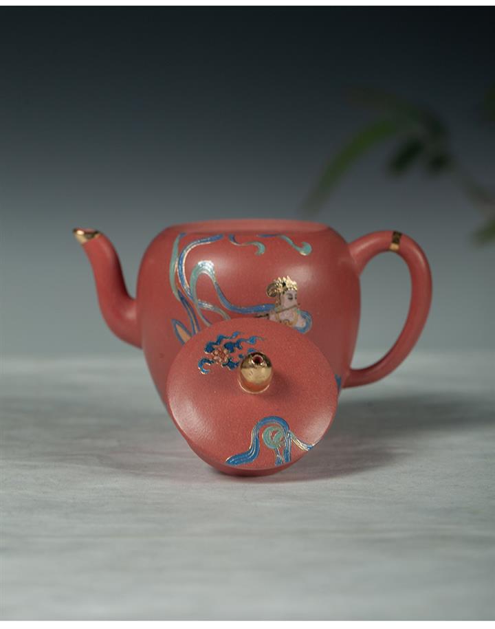 原礦粉泥純手工描金琺瑯美人肩茶壺POT6799