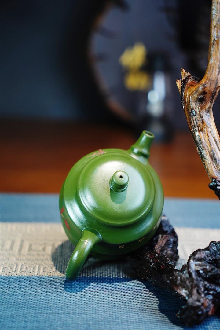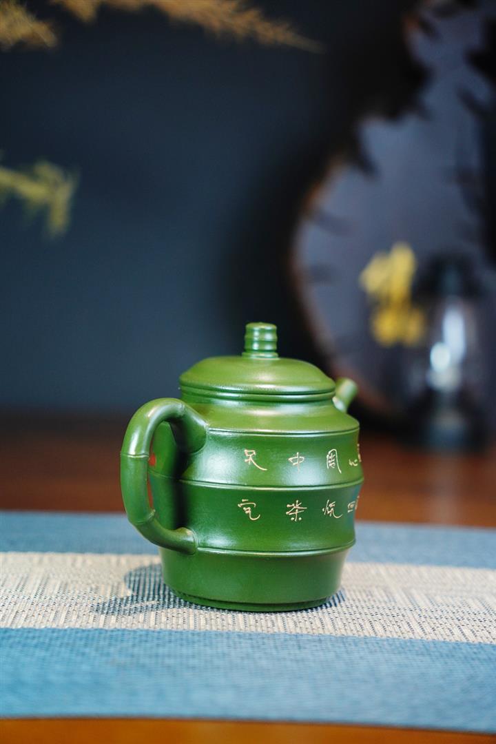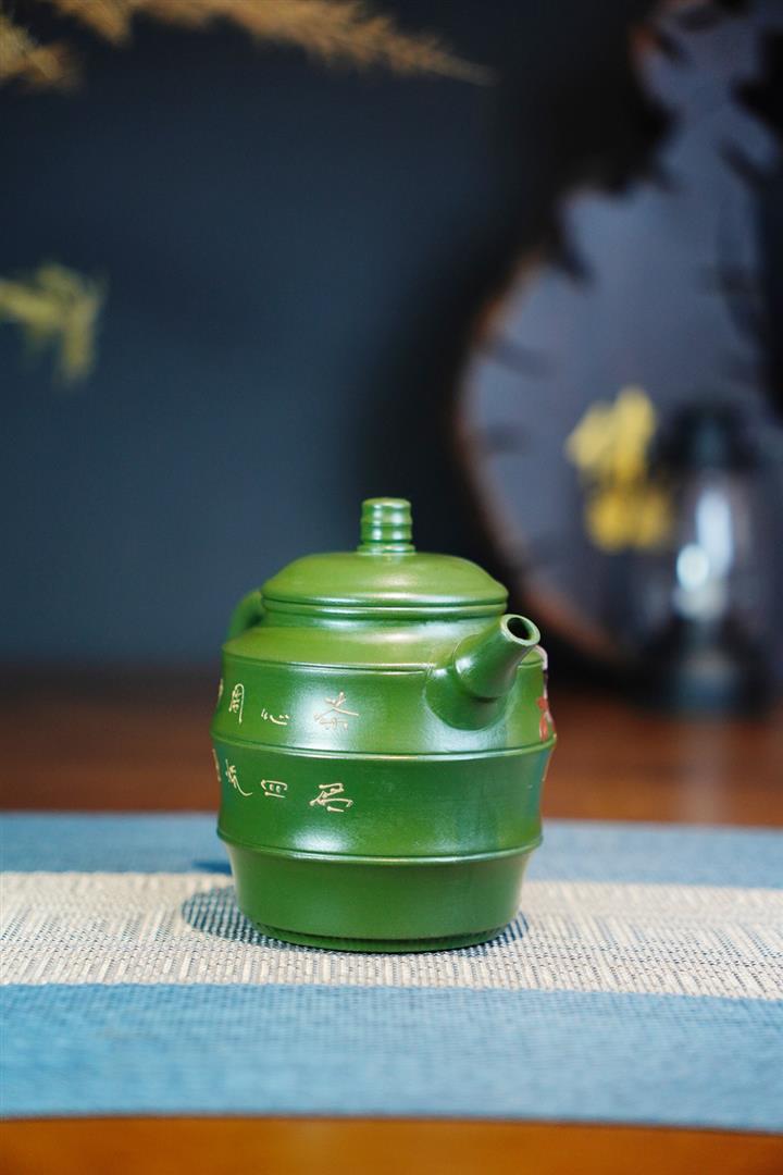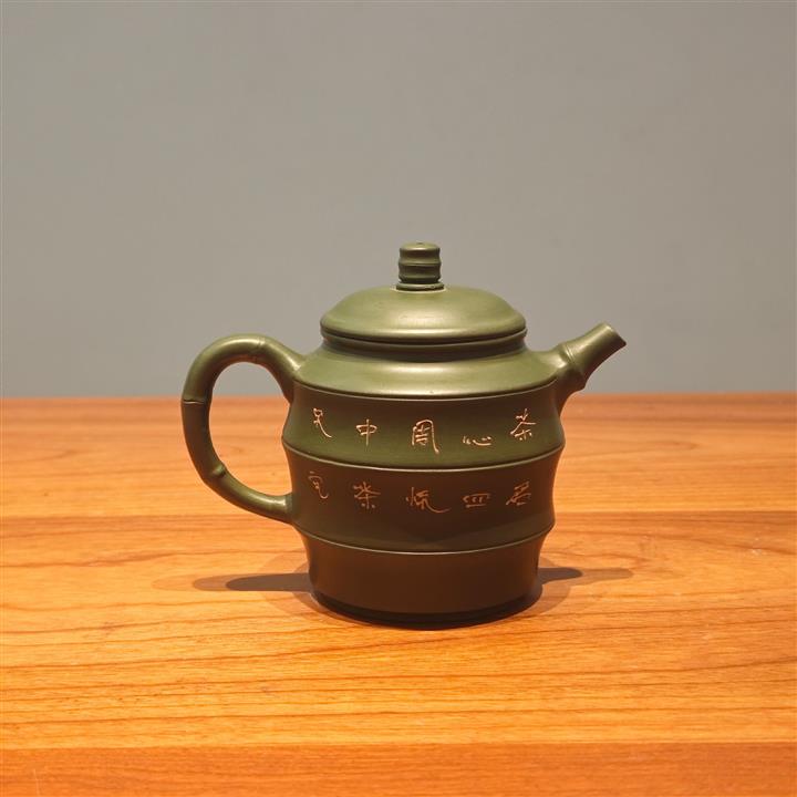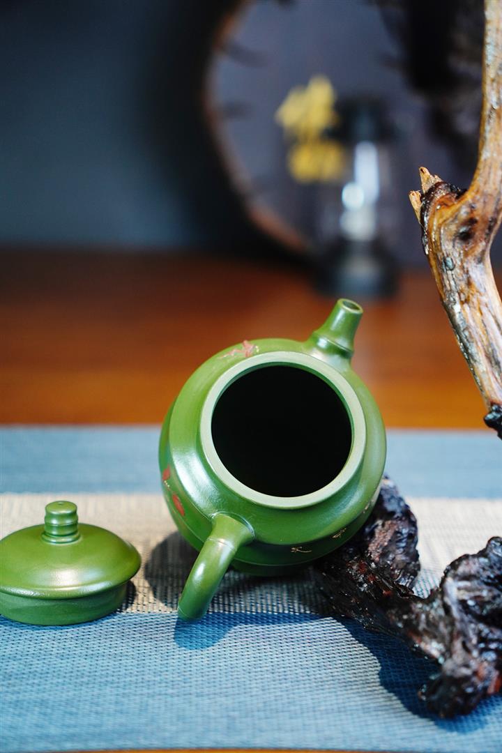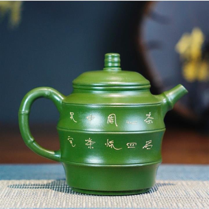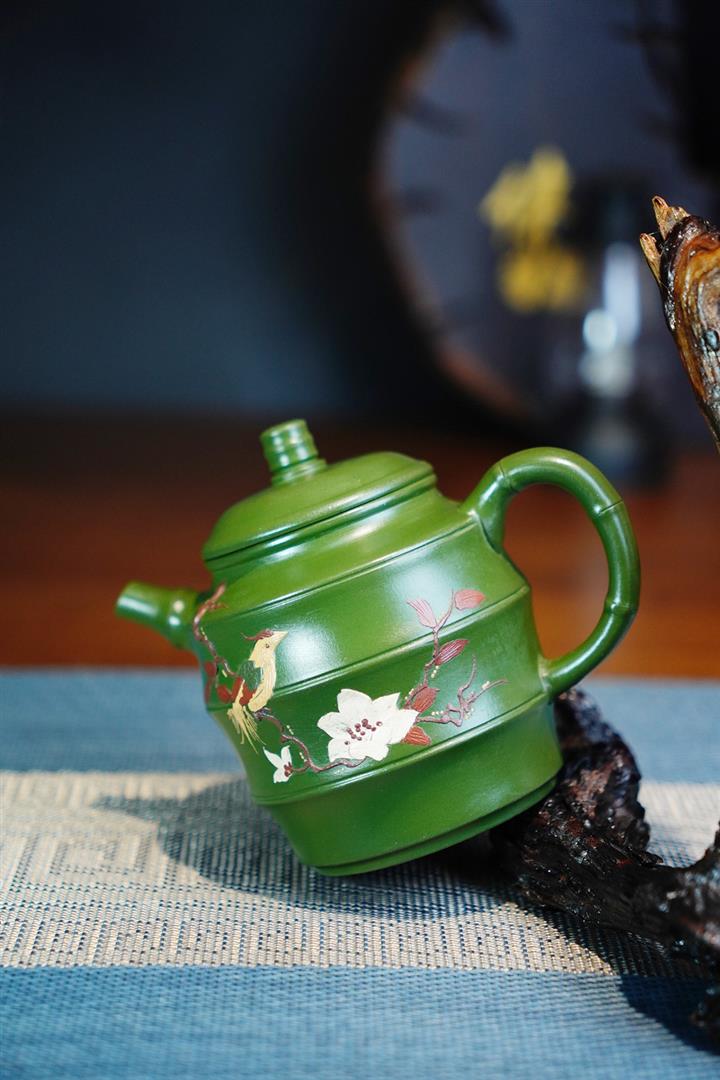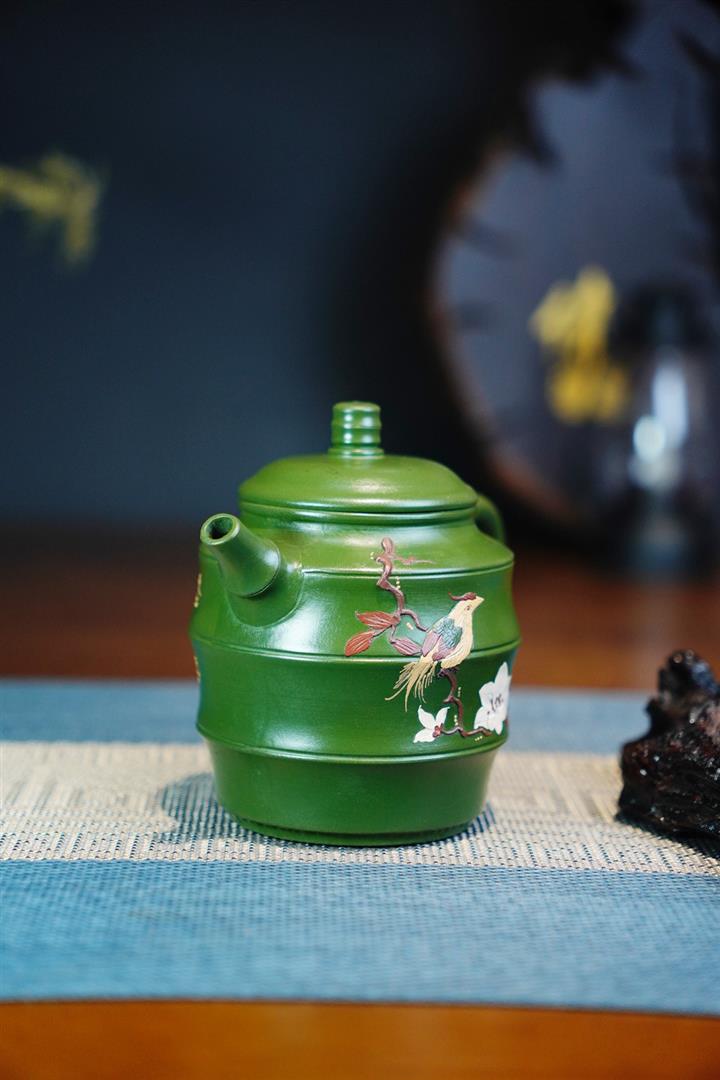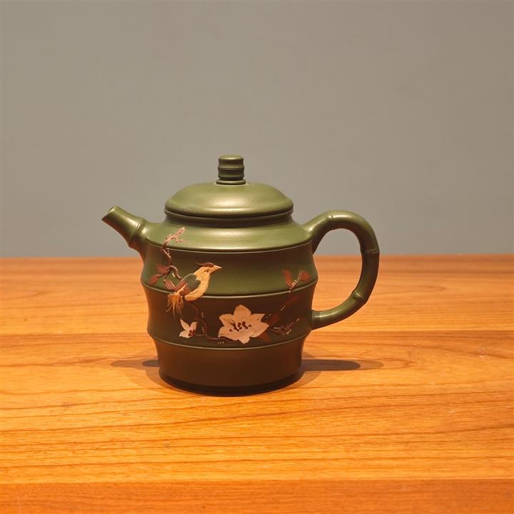 原礦綠泥手工鳥語花香竹節高升茶壺POT6802