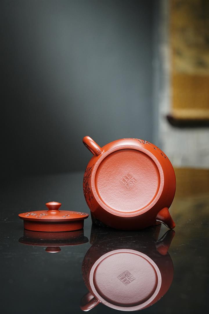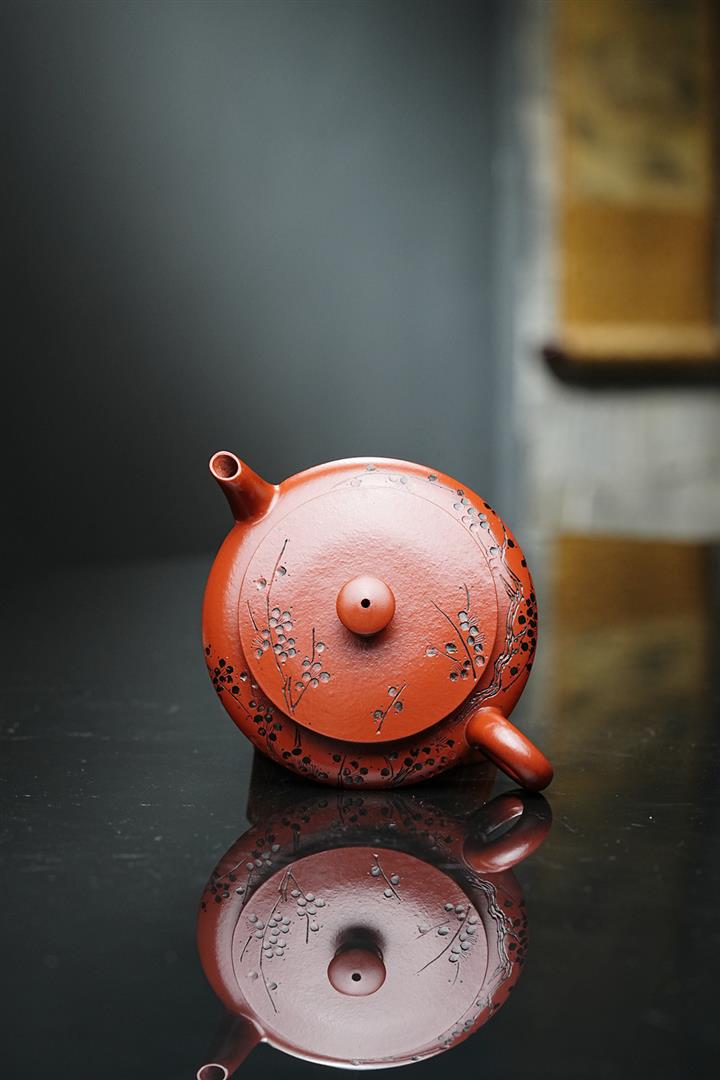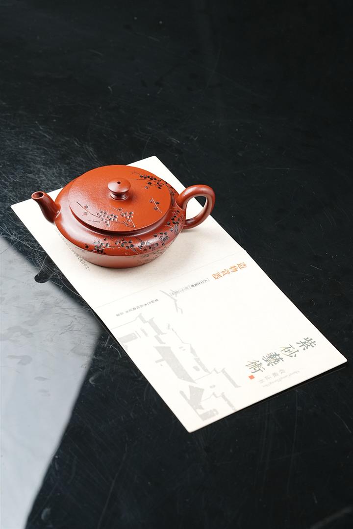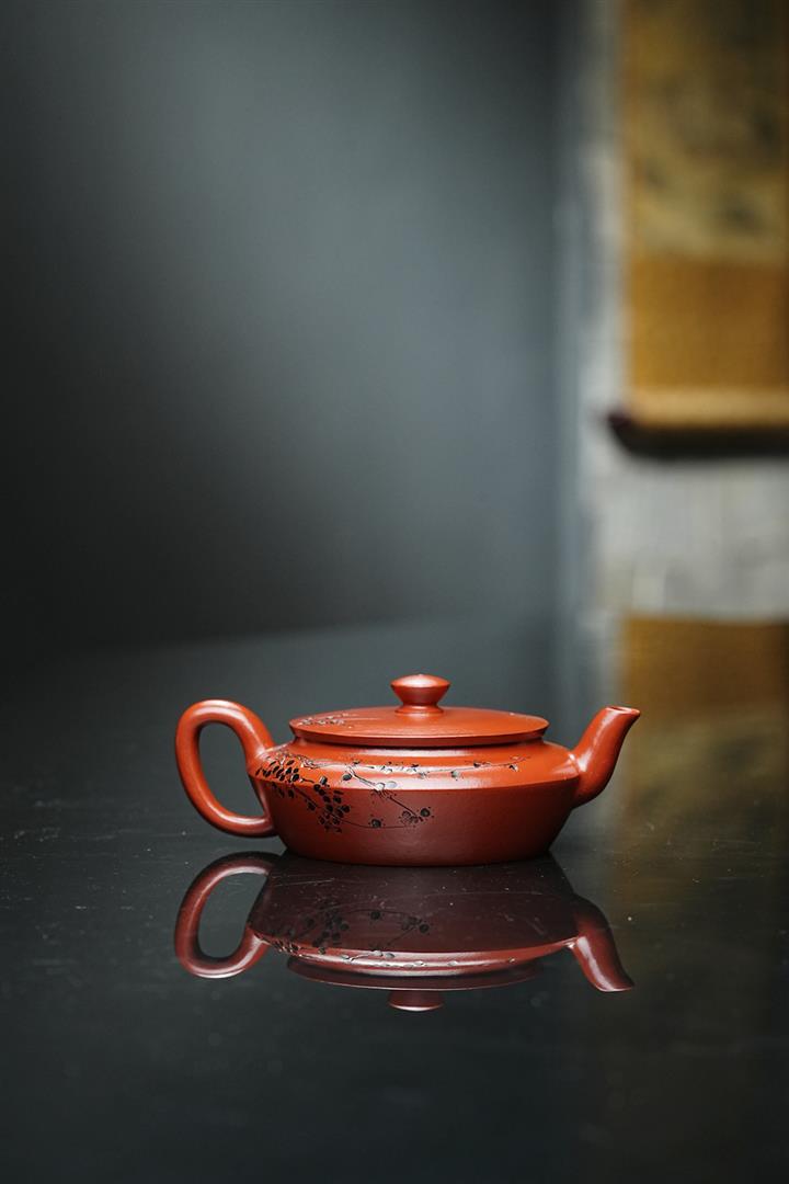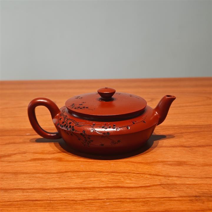 原礦皺皮朱泥墨梅扁碗玉壺茶壺POT6804