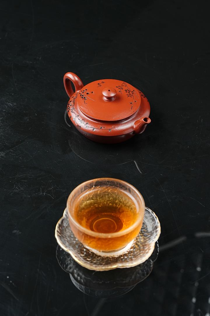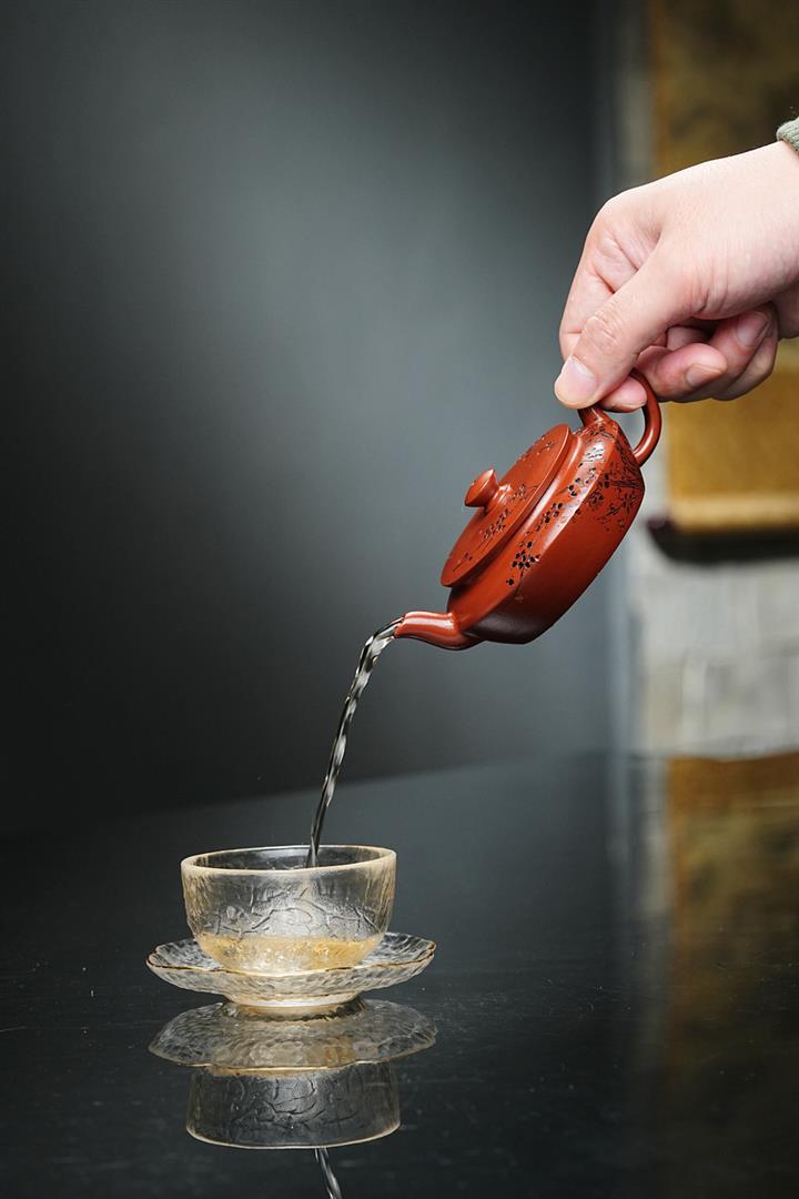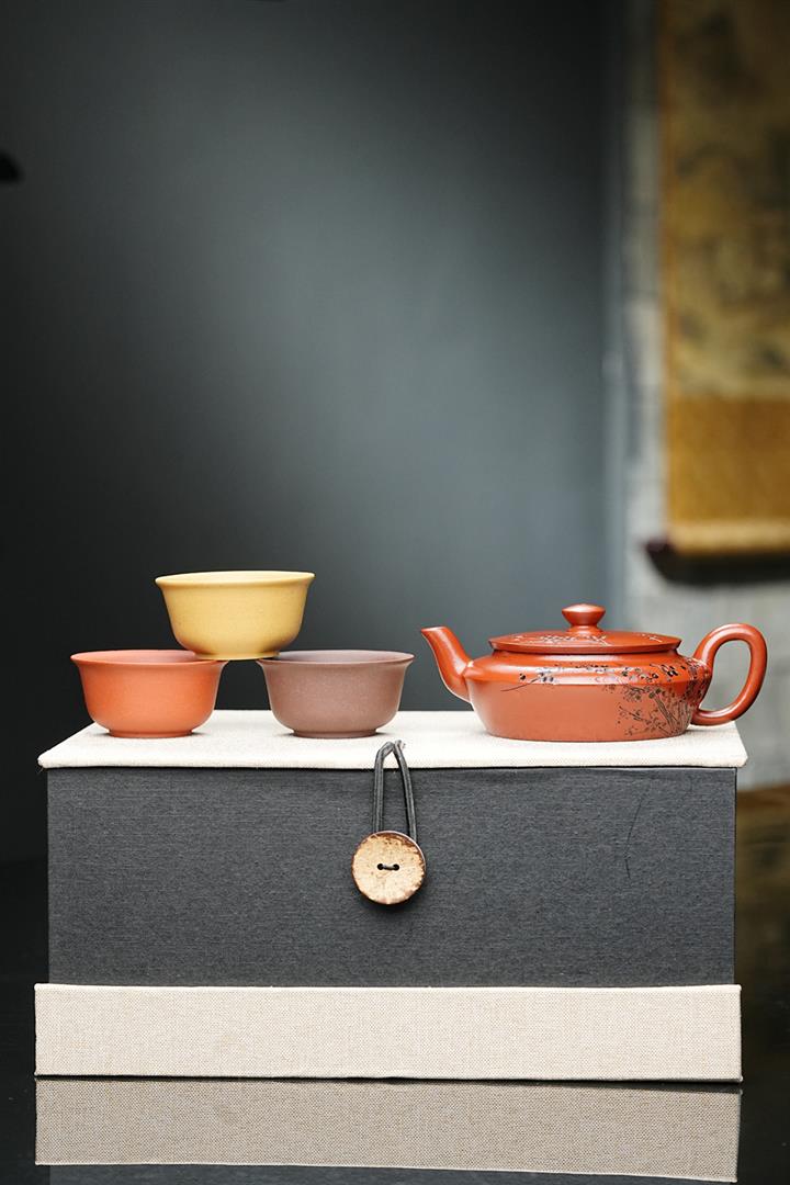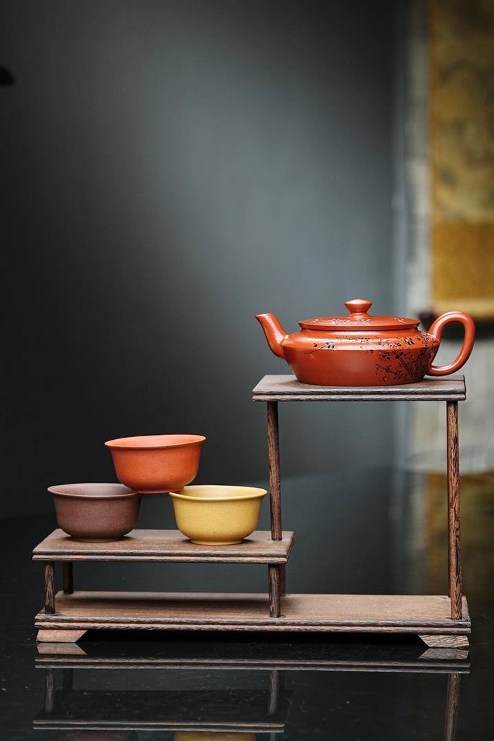 原礦皺皮朱泥墨梅扁碗玉壺茶壺POT6804