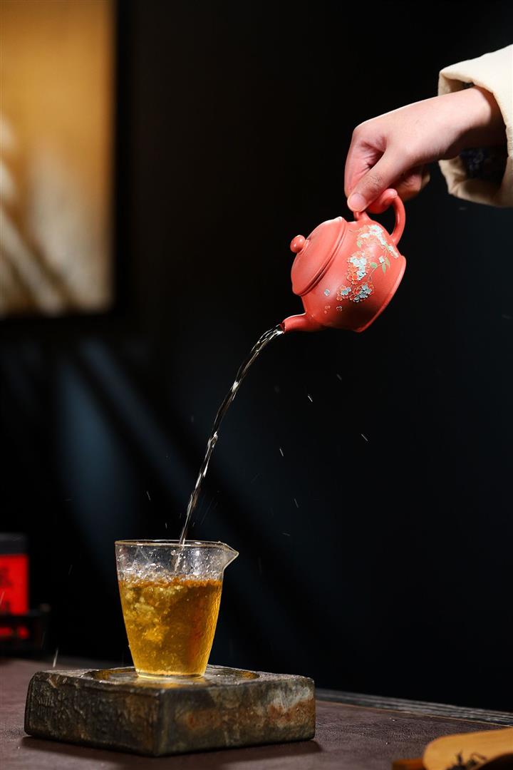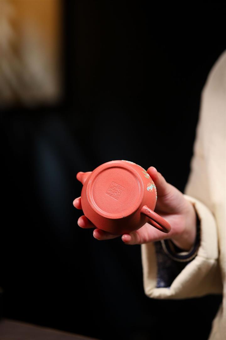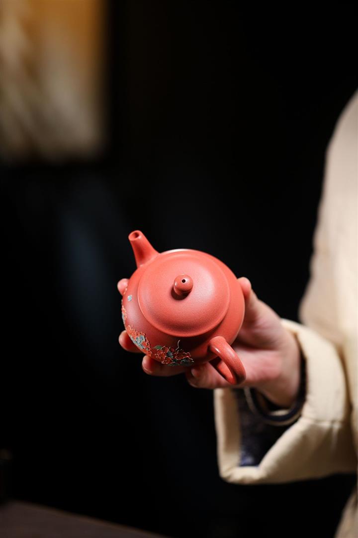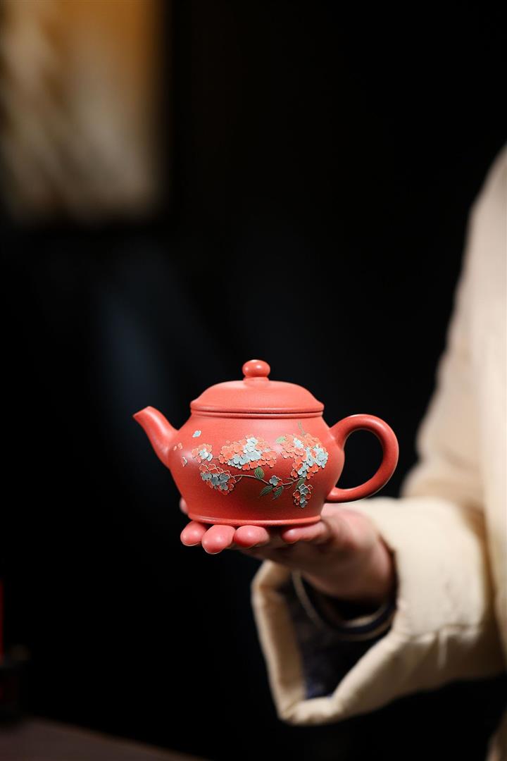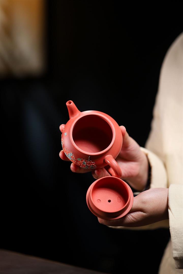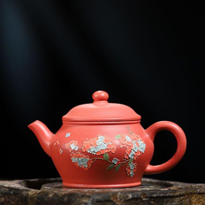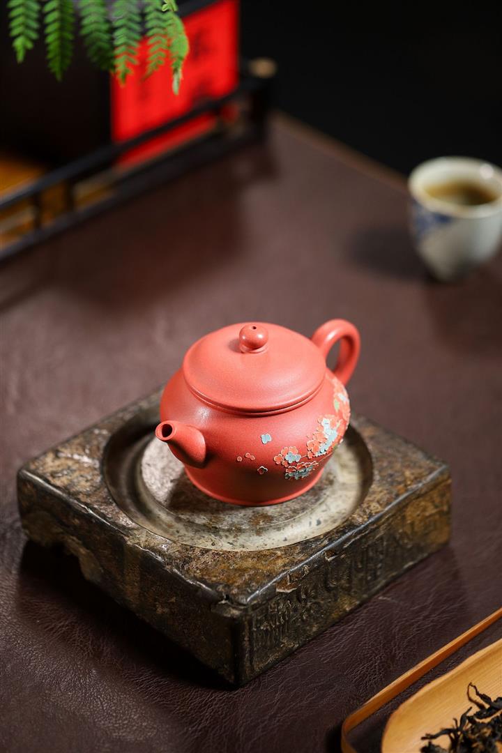 紅降坡手工喜上眉梢玫紅漢瓦茶壺POT6811