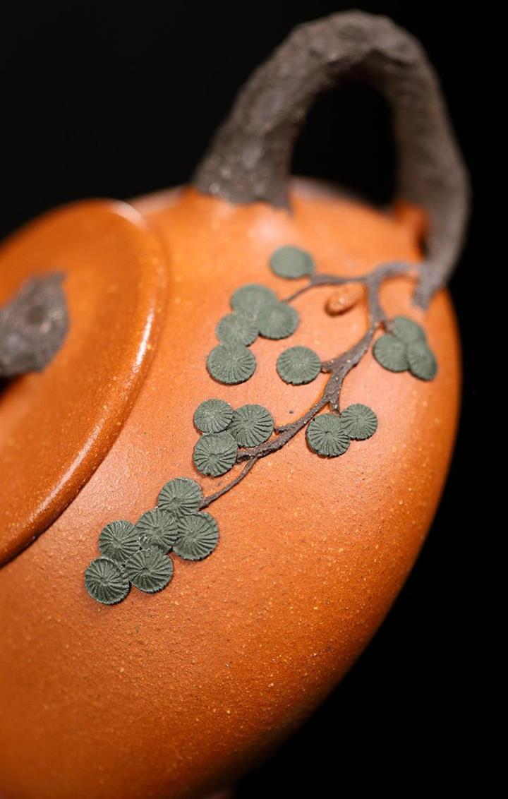原礦大紅朱泥點金報春茶壺POT6829