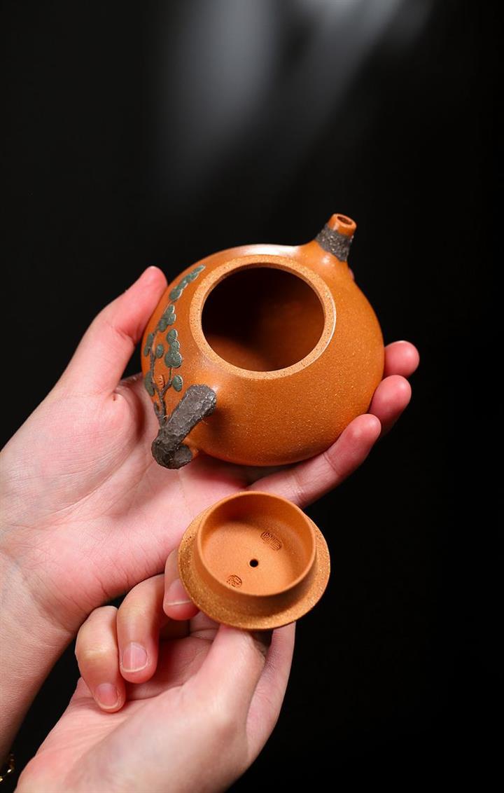原礦紫泥手工刻繪無相茶壺POT6825
