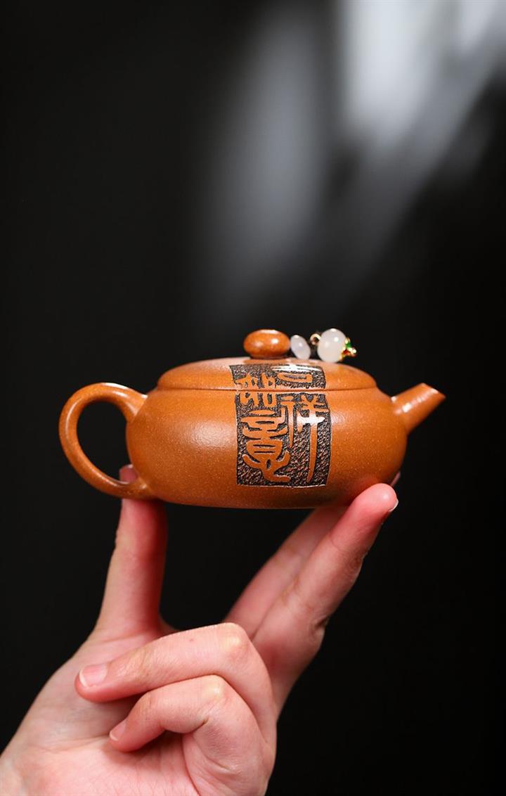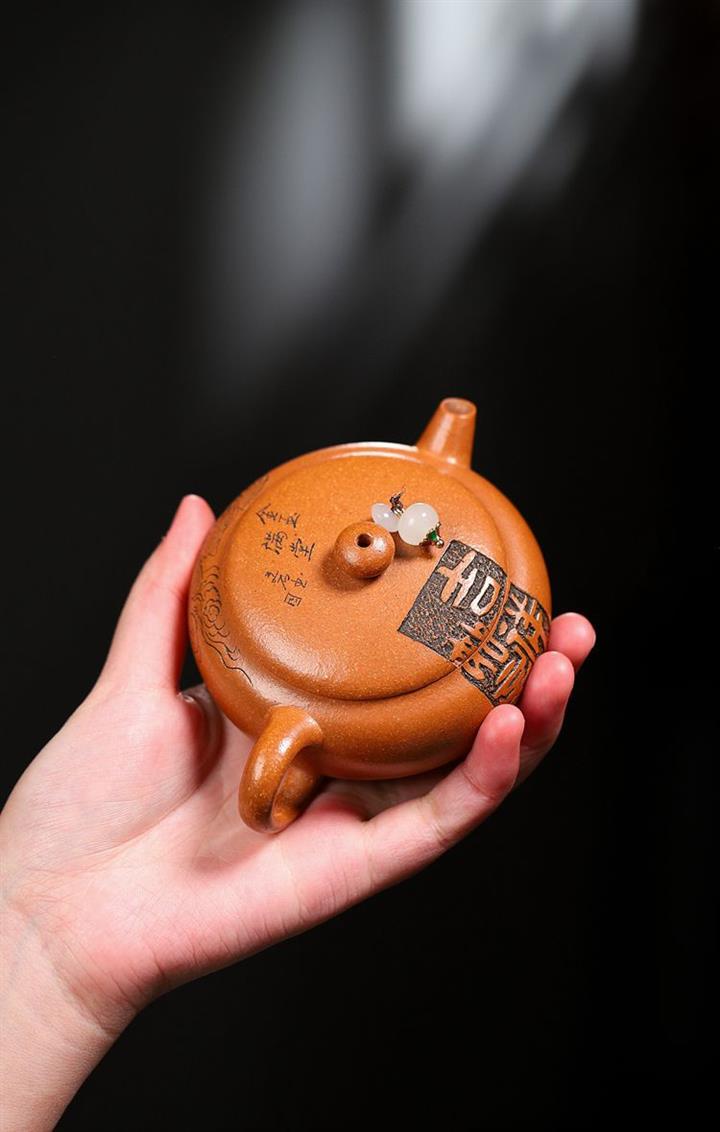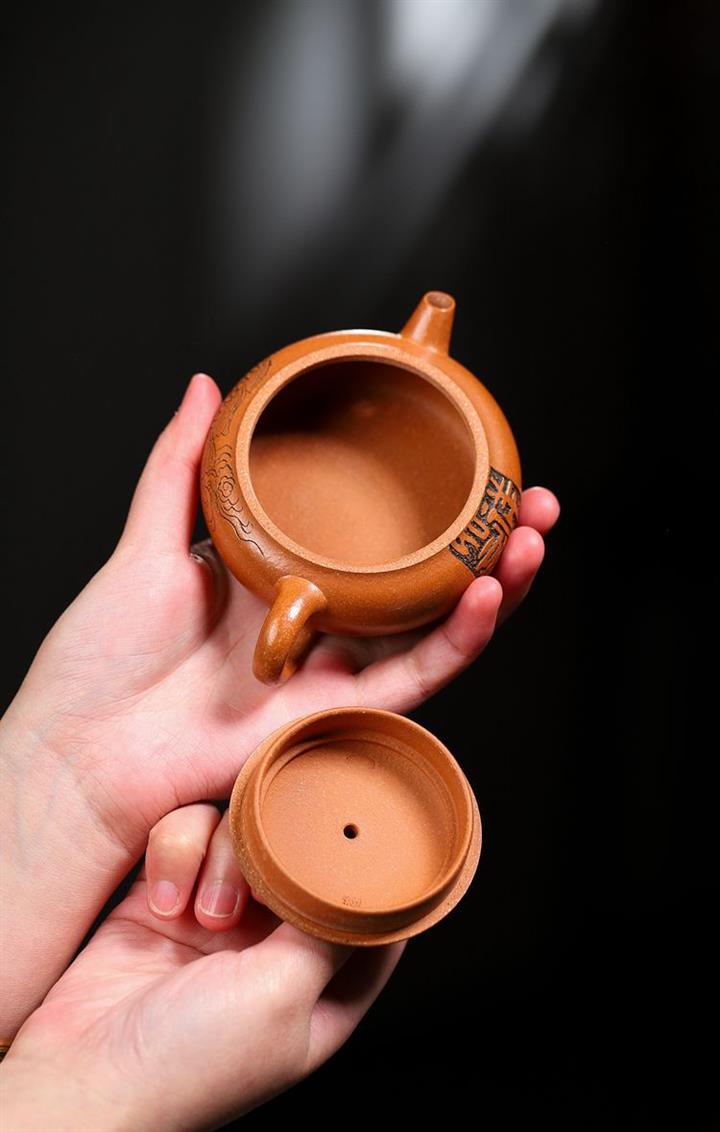 原礦紫泥手工刻繪無相茶壺POT6825