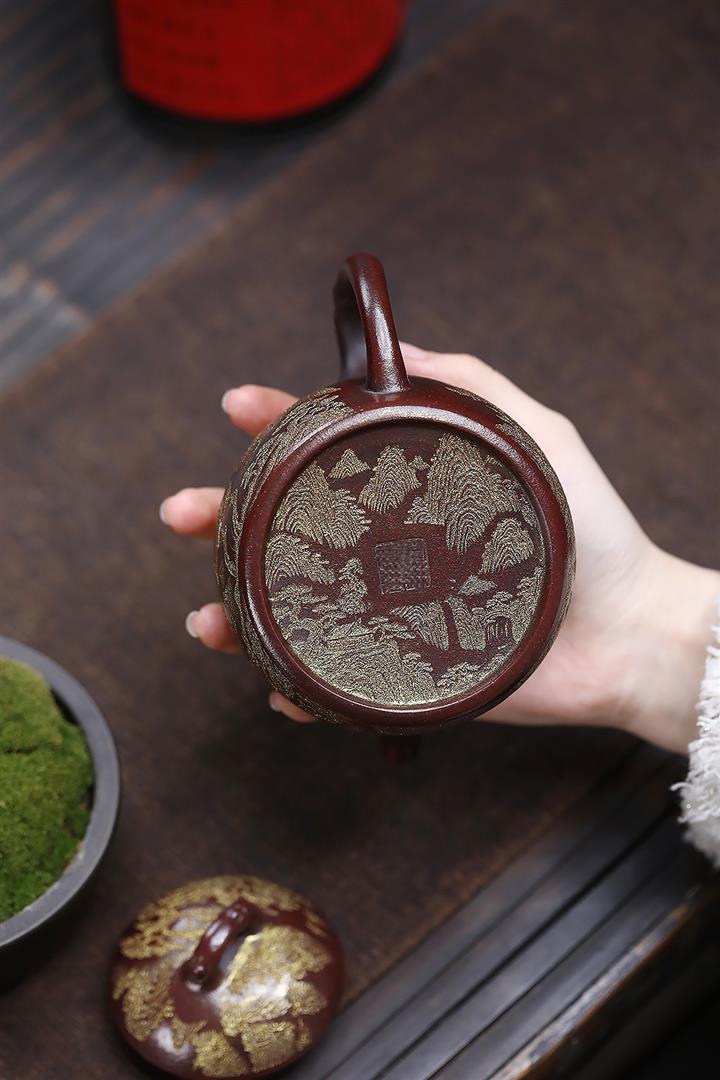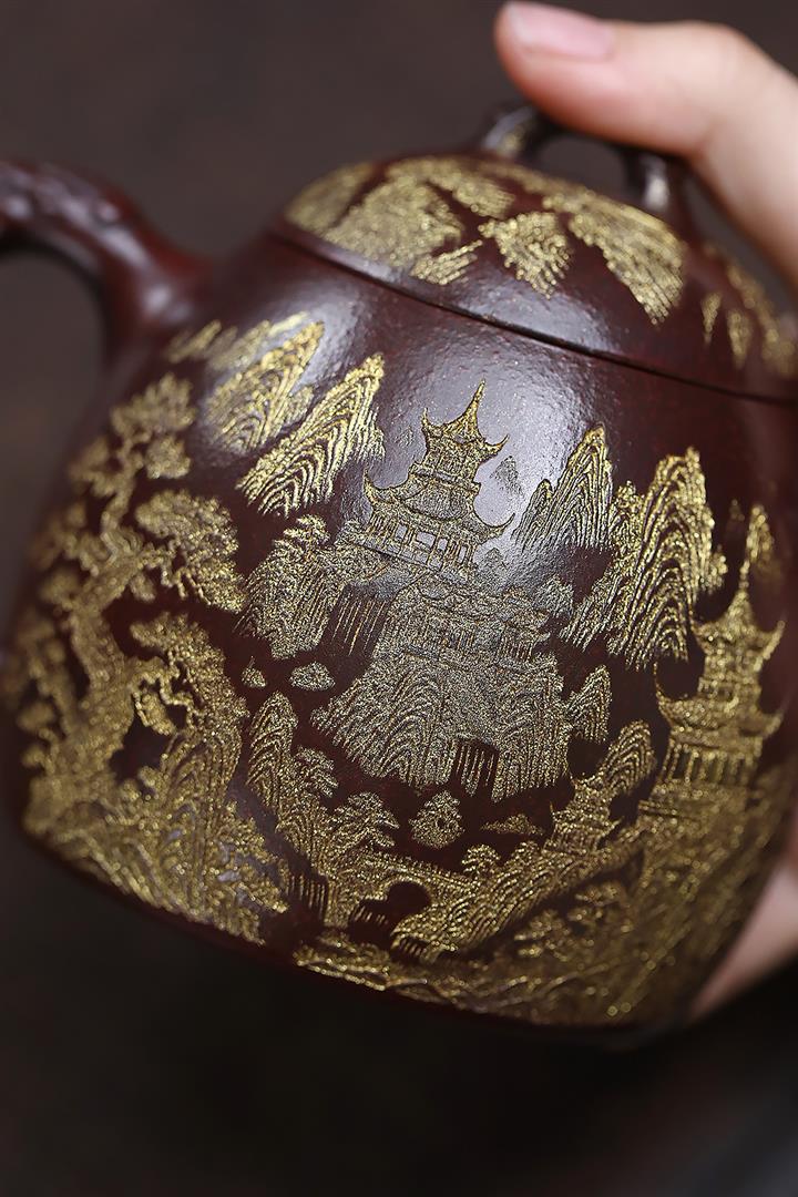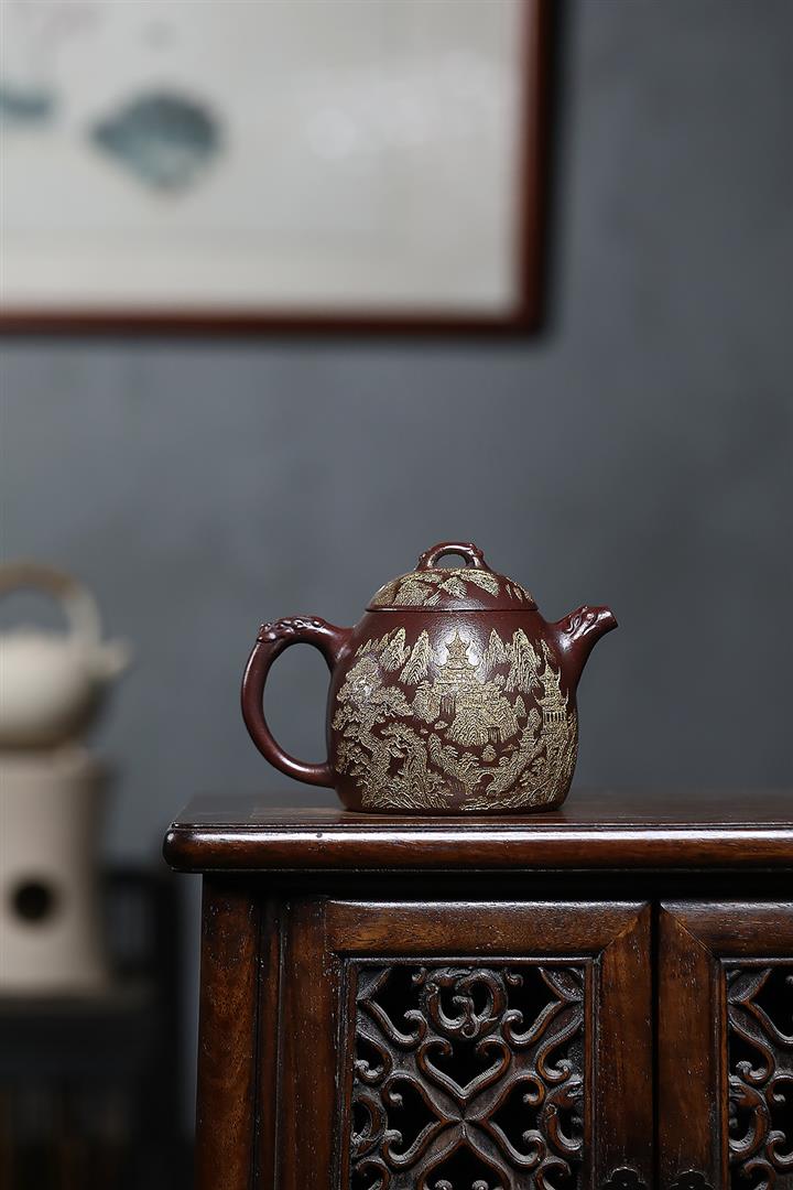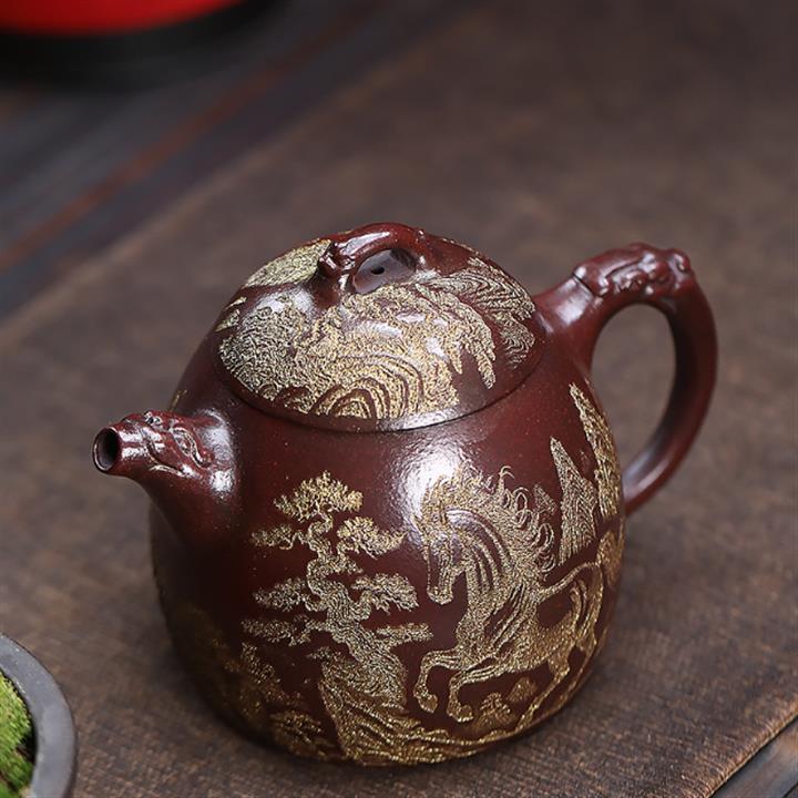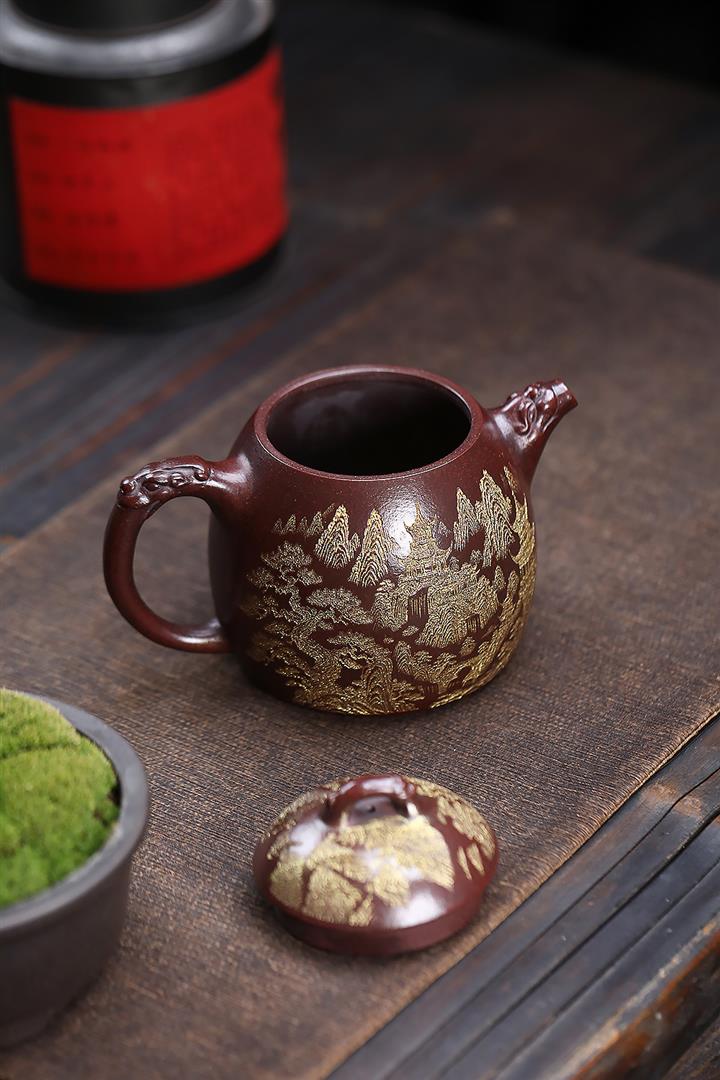 原礦紫泥描金遊龍秦權茶壺POT6831