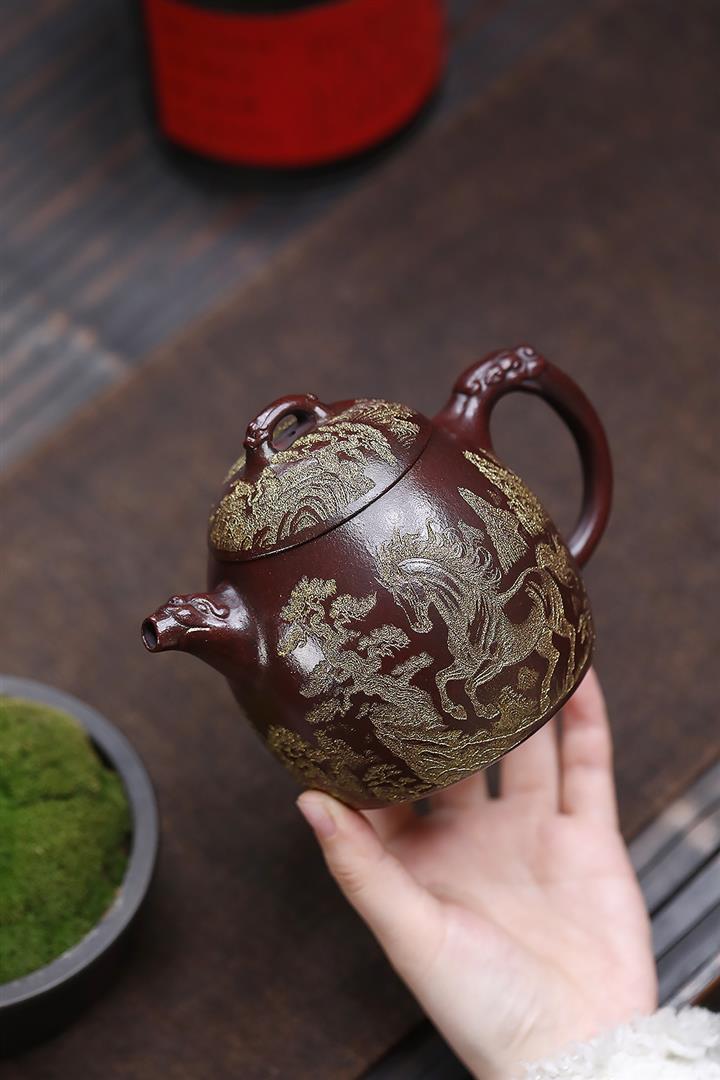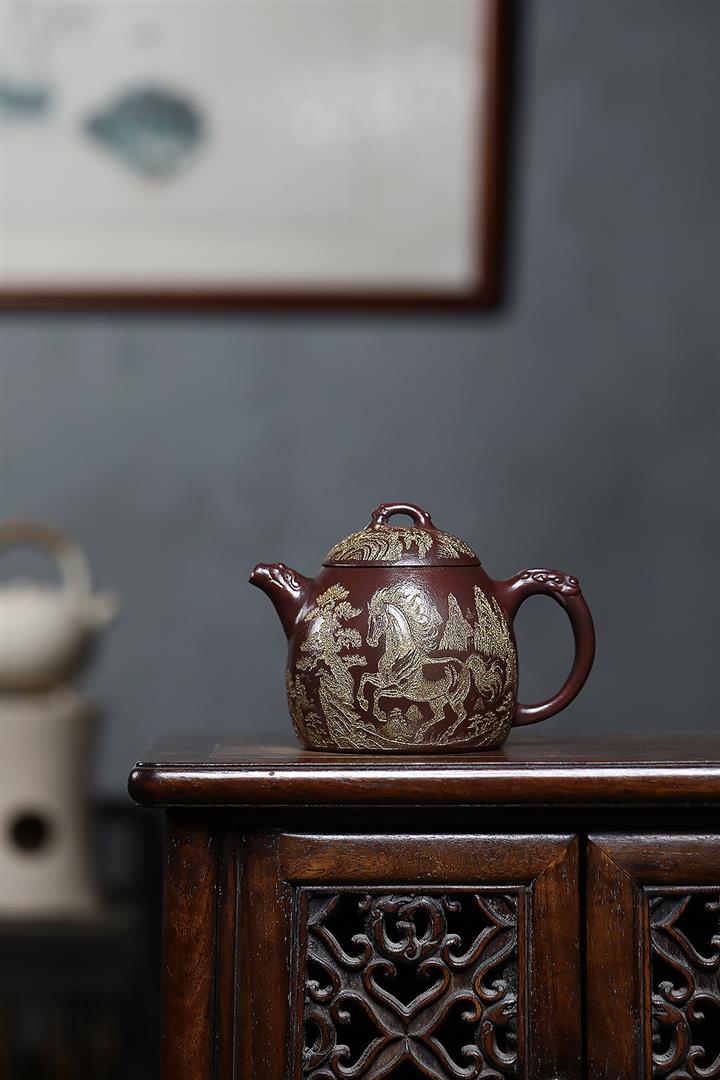 原礦鐵血紅砂躍馬龍權茶壺POT6826