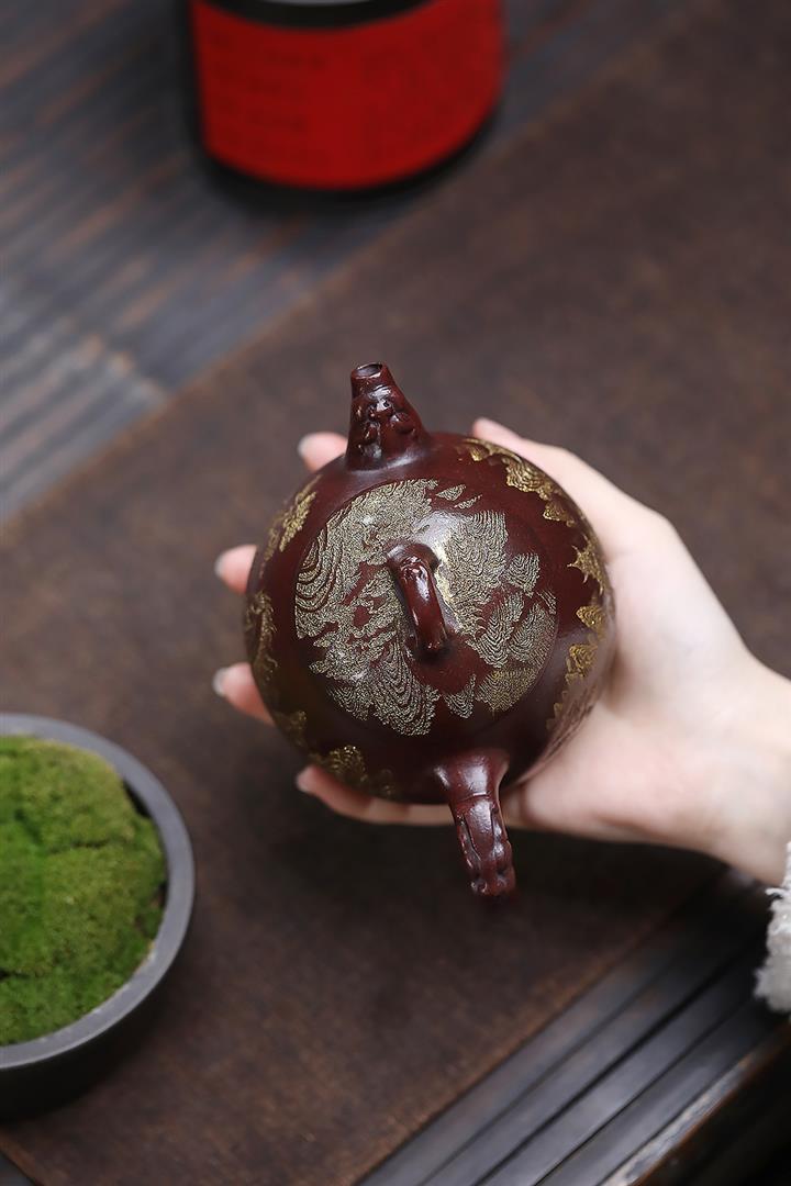 原礦大紅朱泥點金報春茶壺POT6829