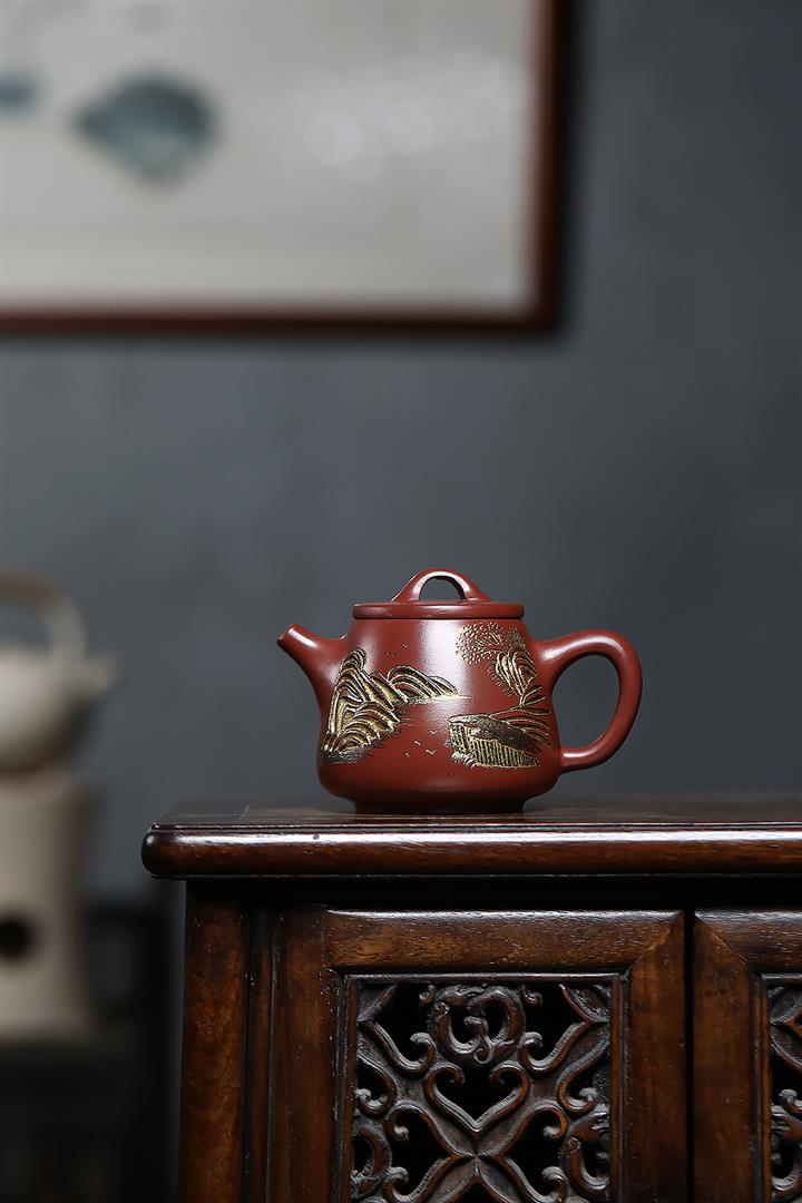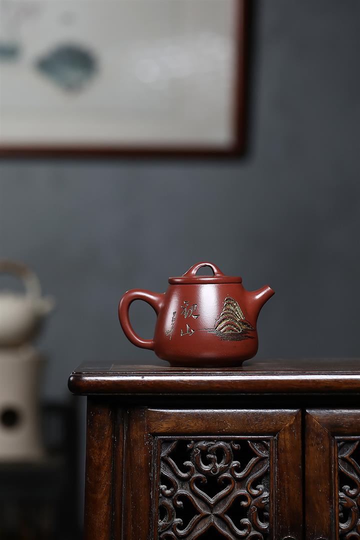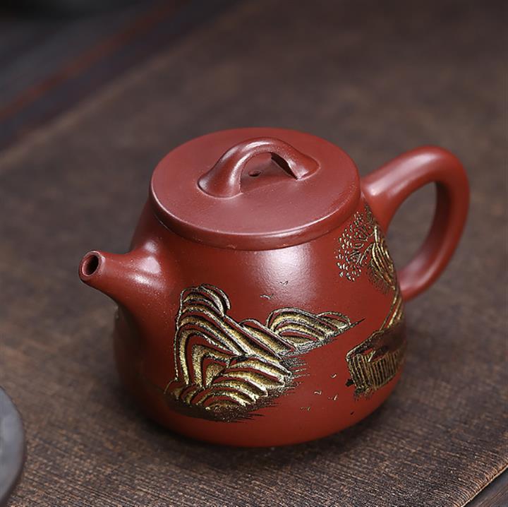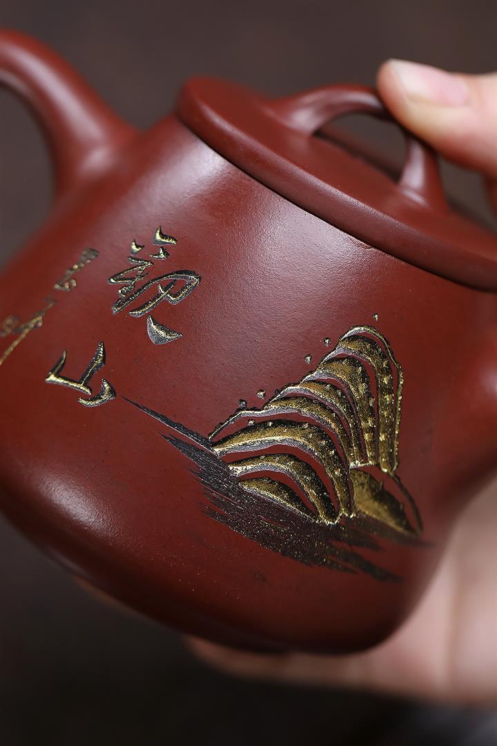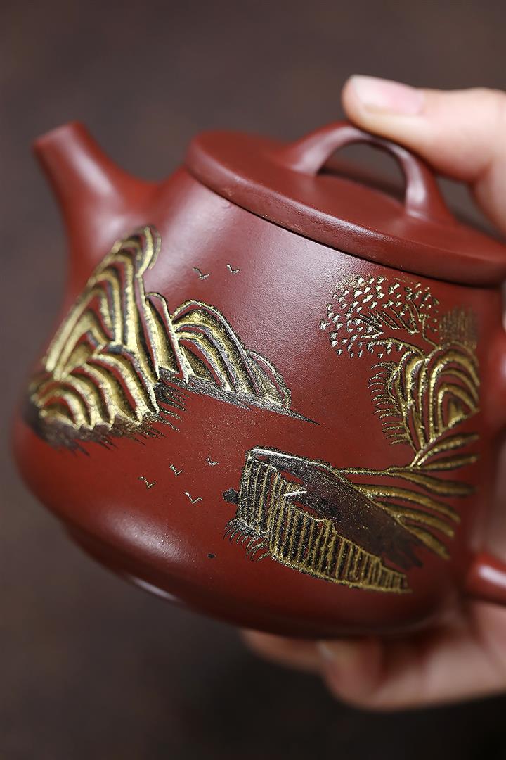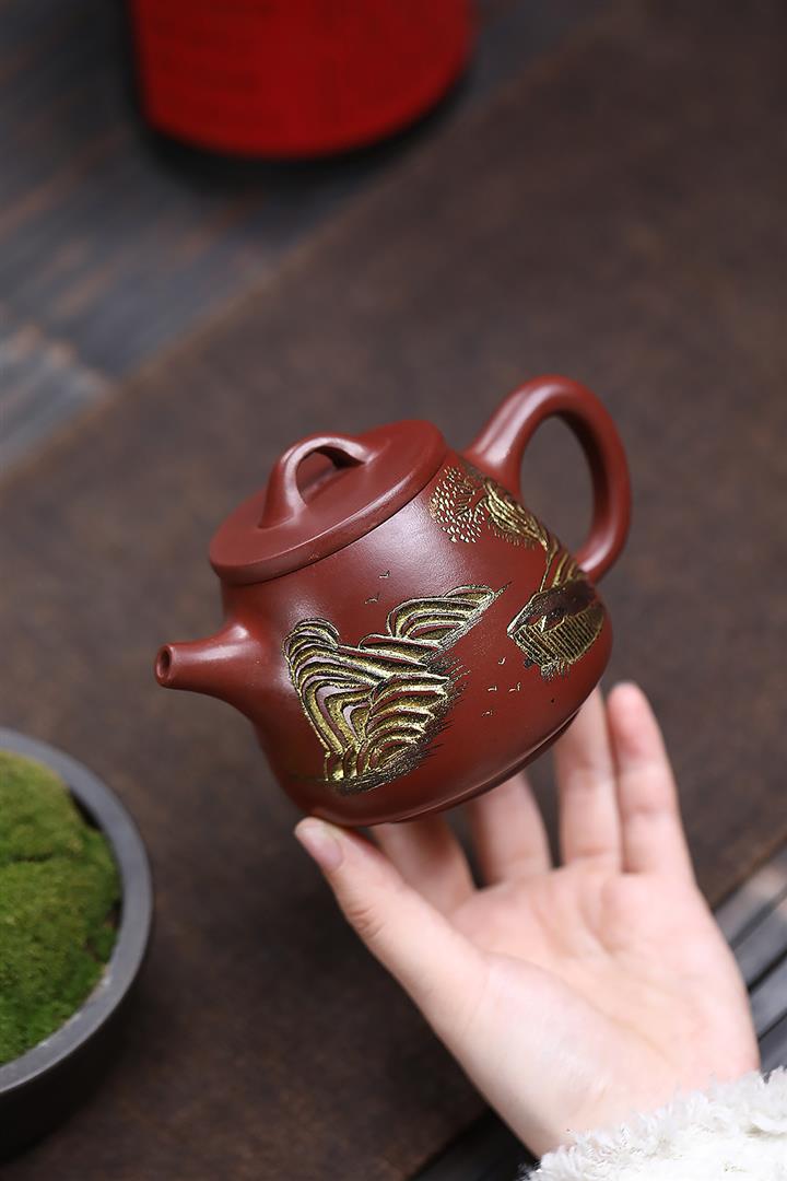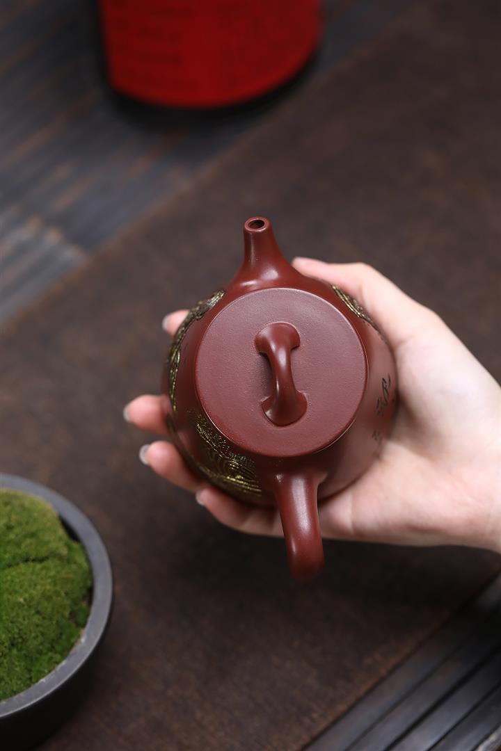 原礦大紅朱泥點金報春茶壺POT6829