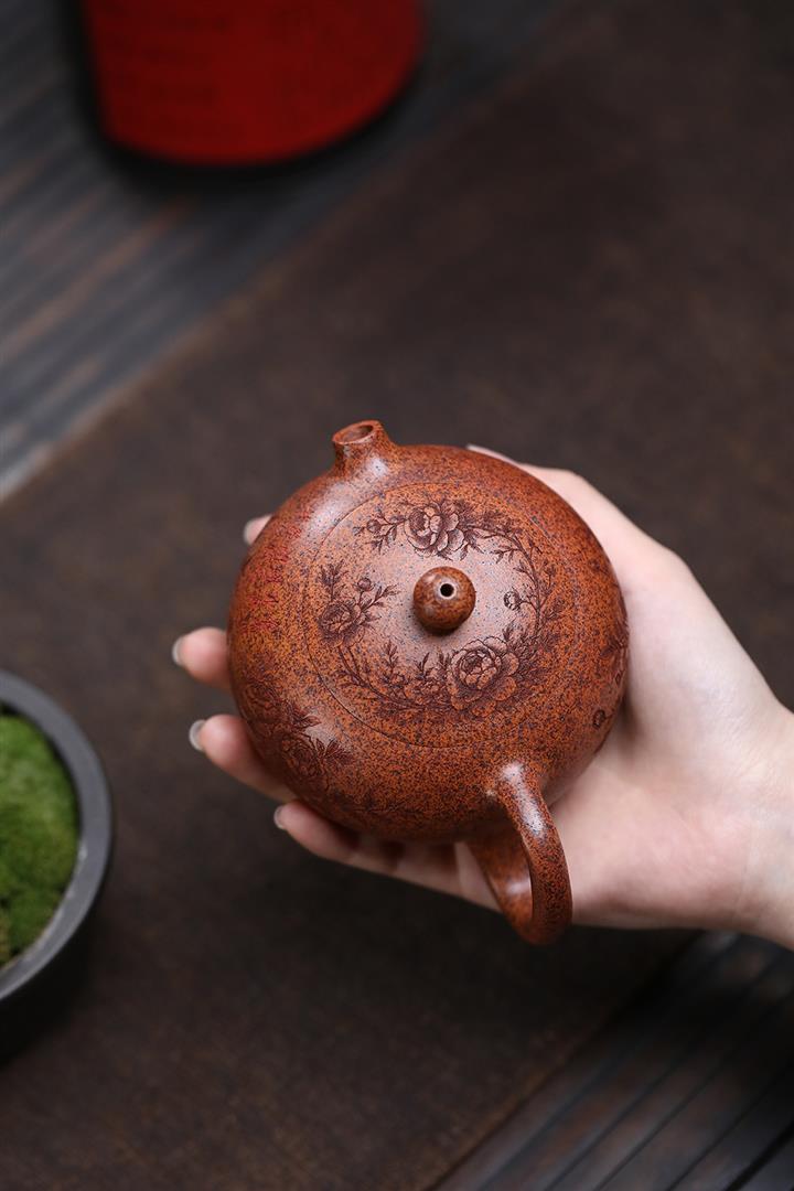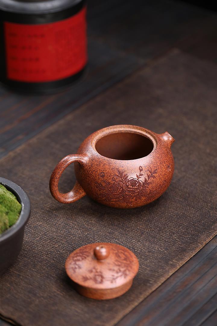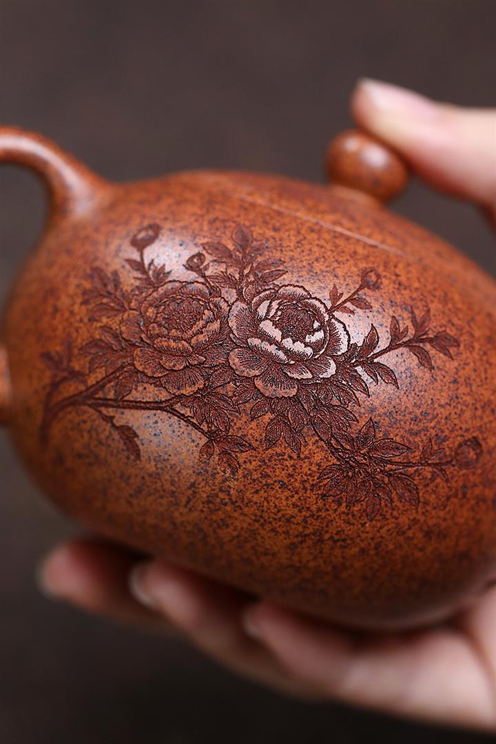 原礦紫泥金魚蓮子荷葉側把壺POT6837