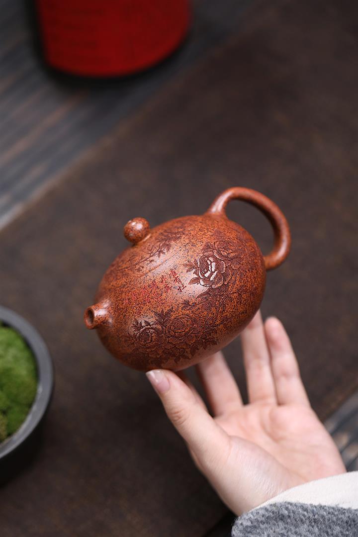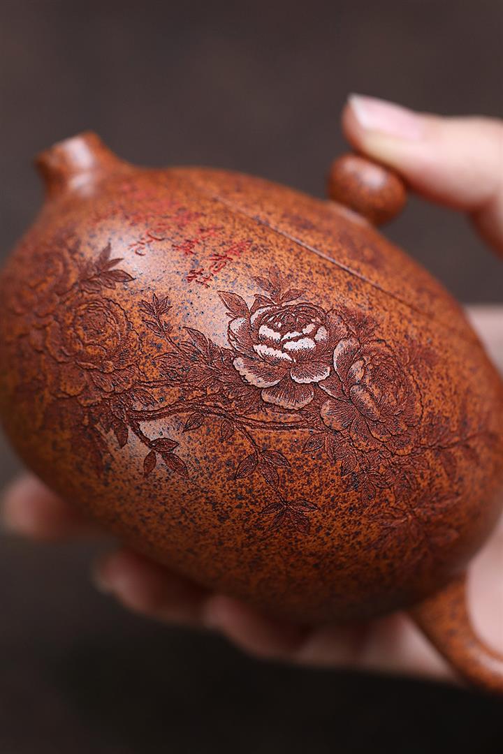 原礦紫泥描金遊龍秦權茶壺POT6831