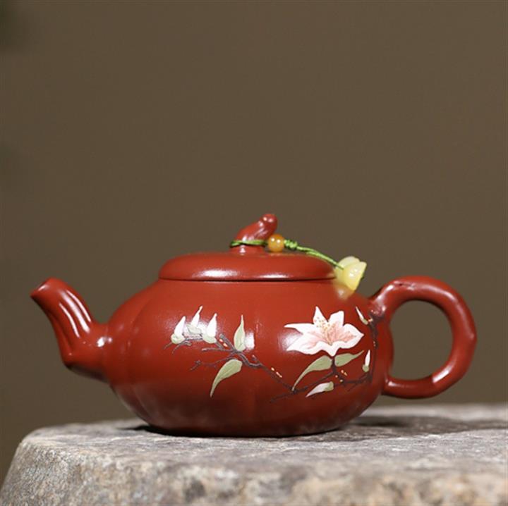 原礦大紅袍手工花繪南瓜茶壺POT6844