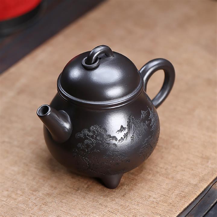 原礦玄鐵石黃三足乳鼎茶壺POT6849