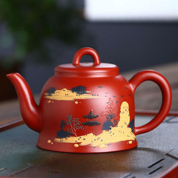 原礦優質大紅袍泥純手工繪金鐘茶壺POT6883