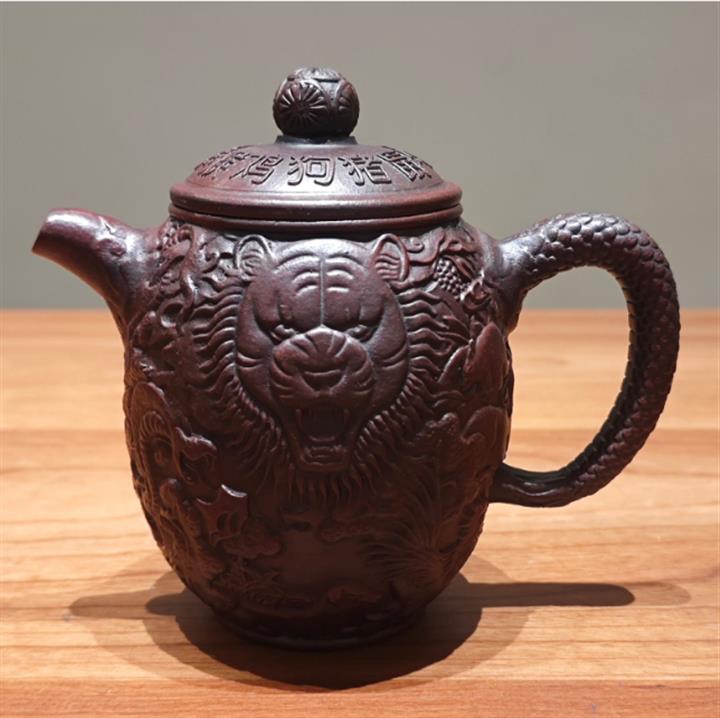 原礦柴燒古銅泥手工龍虎高杯茶壺POT6884