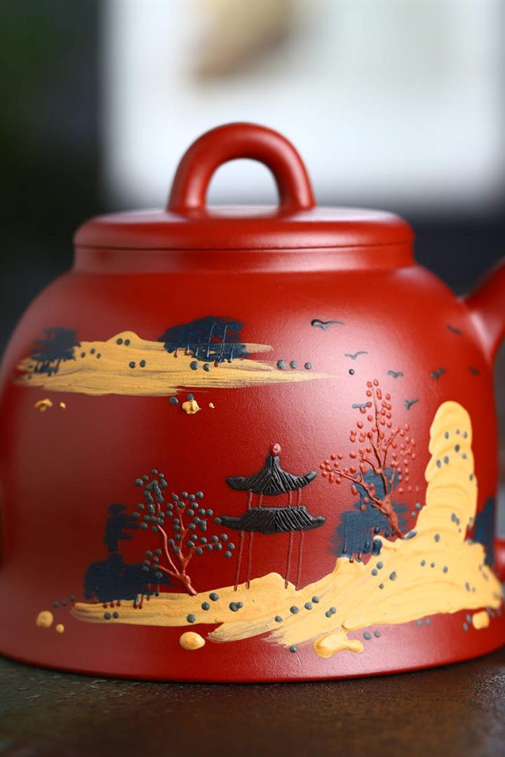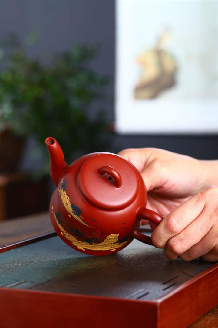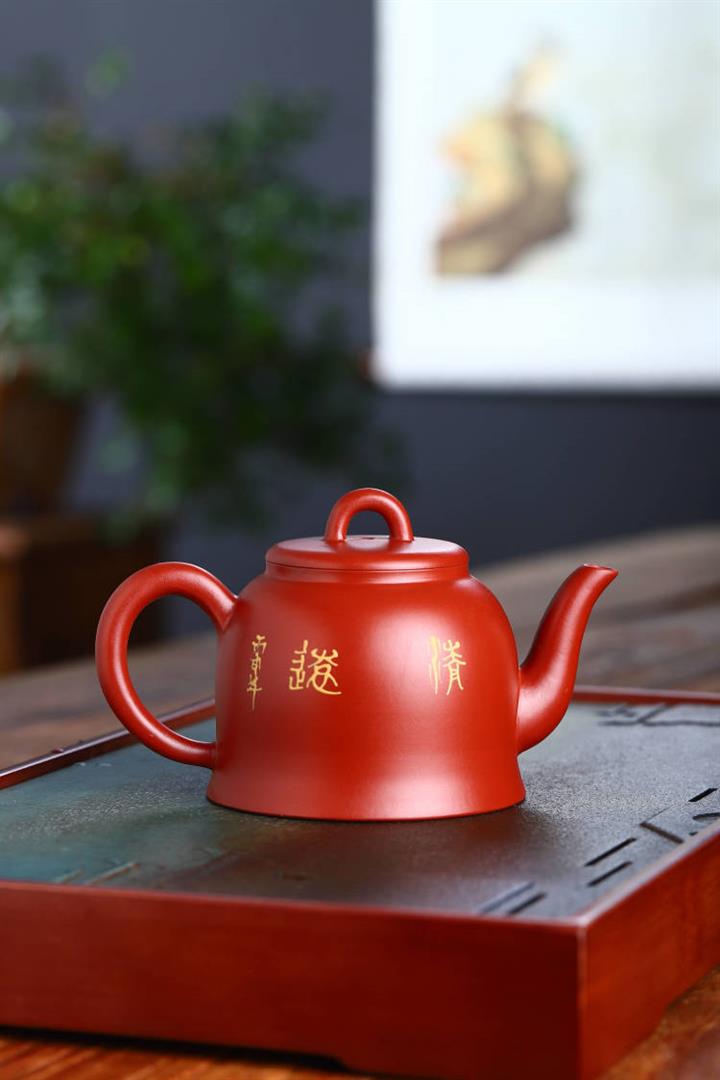 原礦優質大紅袍泥純手工繪金鐘茶壺POT6883