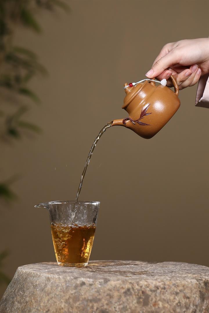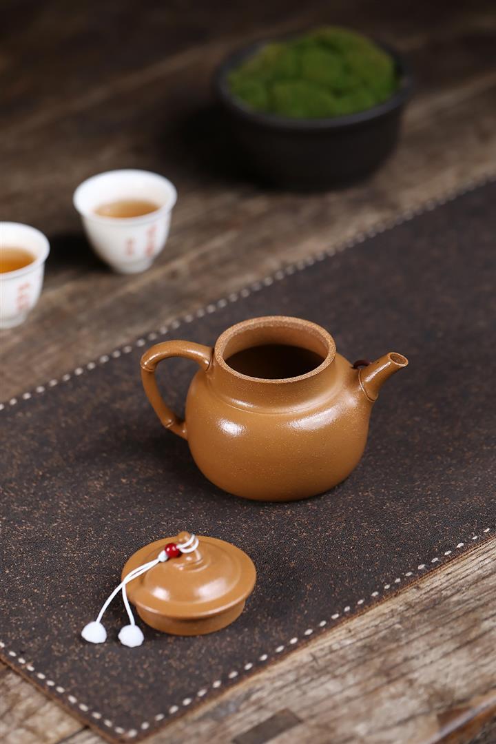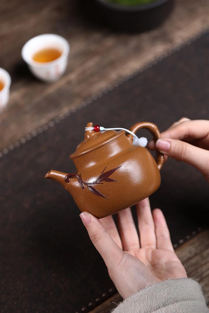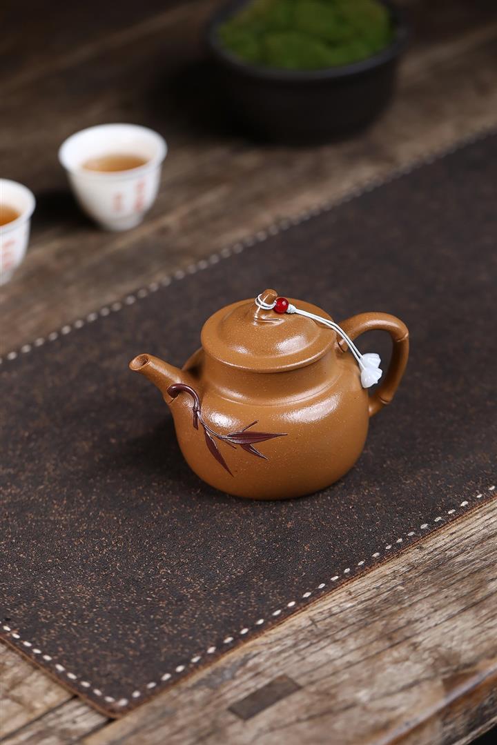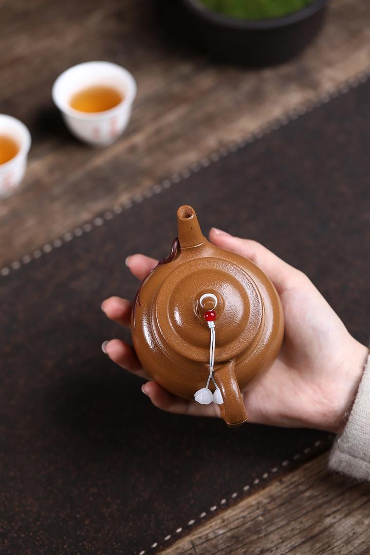 原礦石黃手工刻字秋水茶壺POT6905