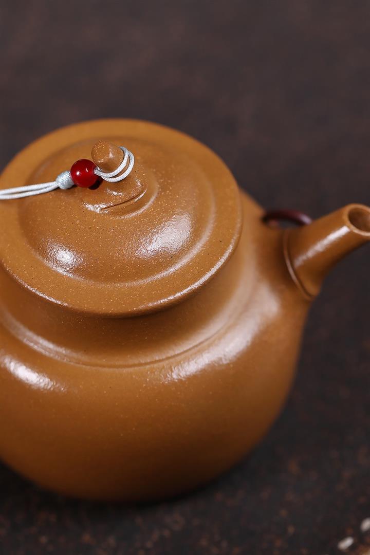 【泥料特點】砂土氣重,似淳實農民,日久使用,漸露鋒芒,養成變化甚大,溫潤莊重。線條優美自然,嘴把搭配協調,身桶配上細長的把搭配,更顯優生動……