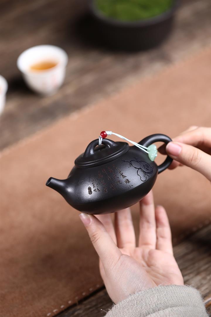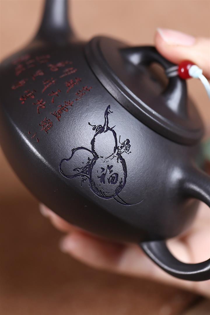 原礦石黃泥手工文人刻繪漢瓦茶壺POT6902