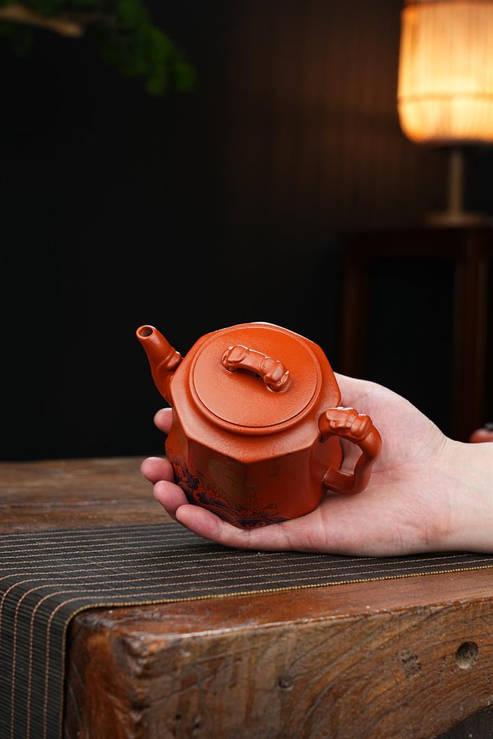 原礦小紅泥手工八方祥瑞茶壺POT6909