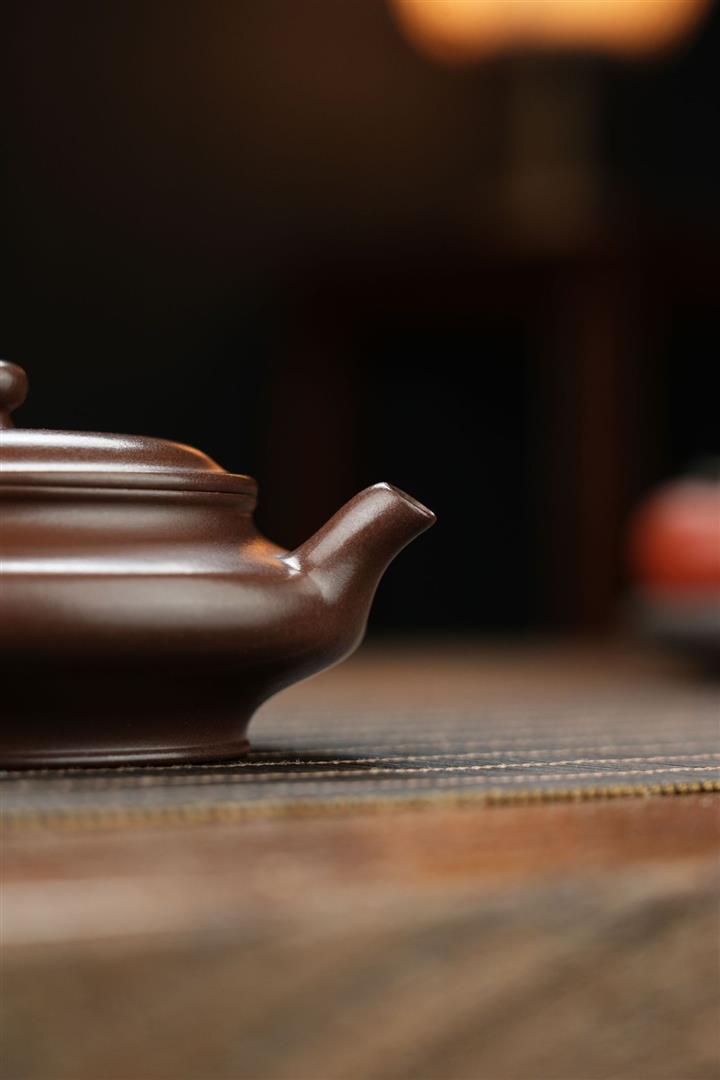 【泥料特點】砂土氣重,似淳實農民,日久使用,漸露鋒芒不成變化甚大,溫潤莊重。線條優美自然,嘴把搭配協調,身頂部細長的把搭配,更顯優雅