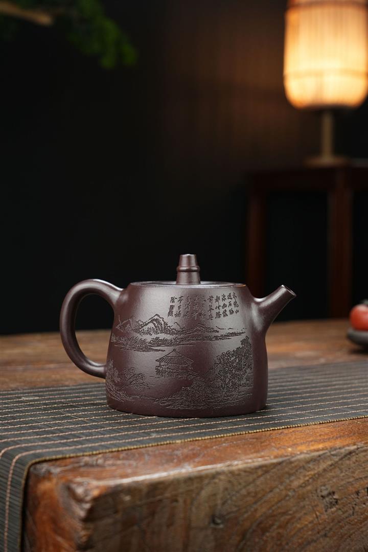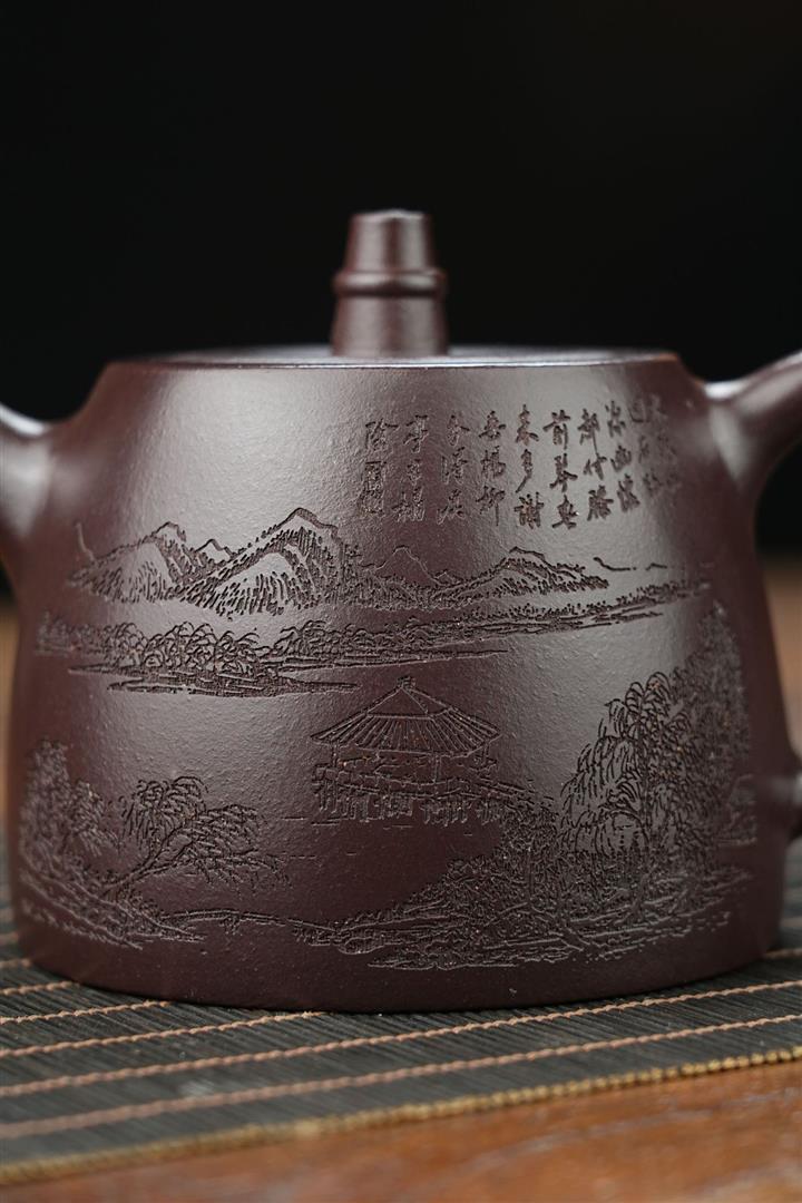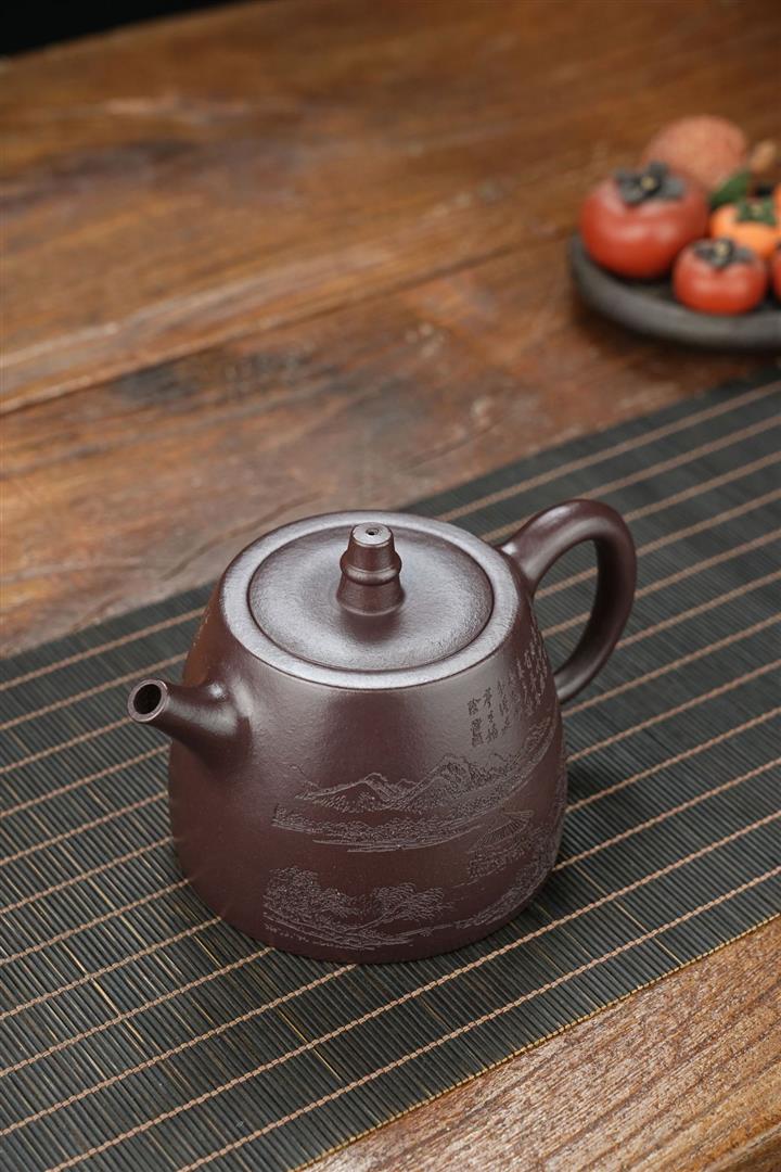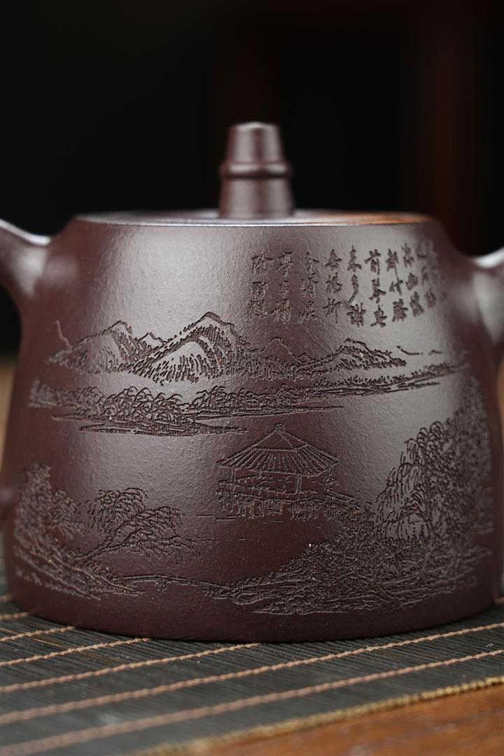 原礦墨綠泥手工刻畫山水仿古茶壺POT6930