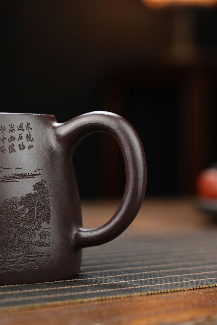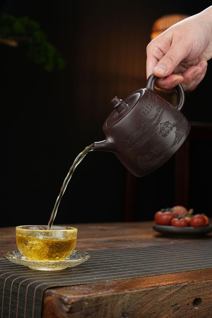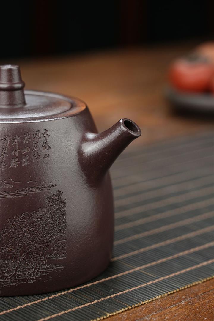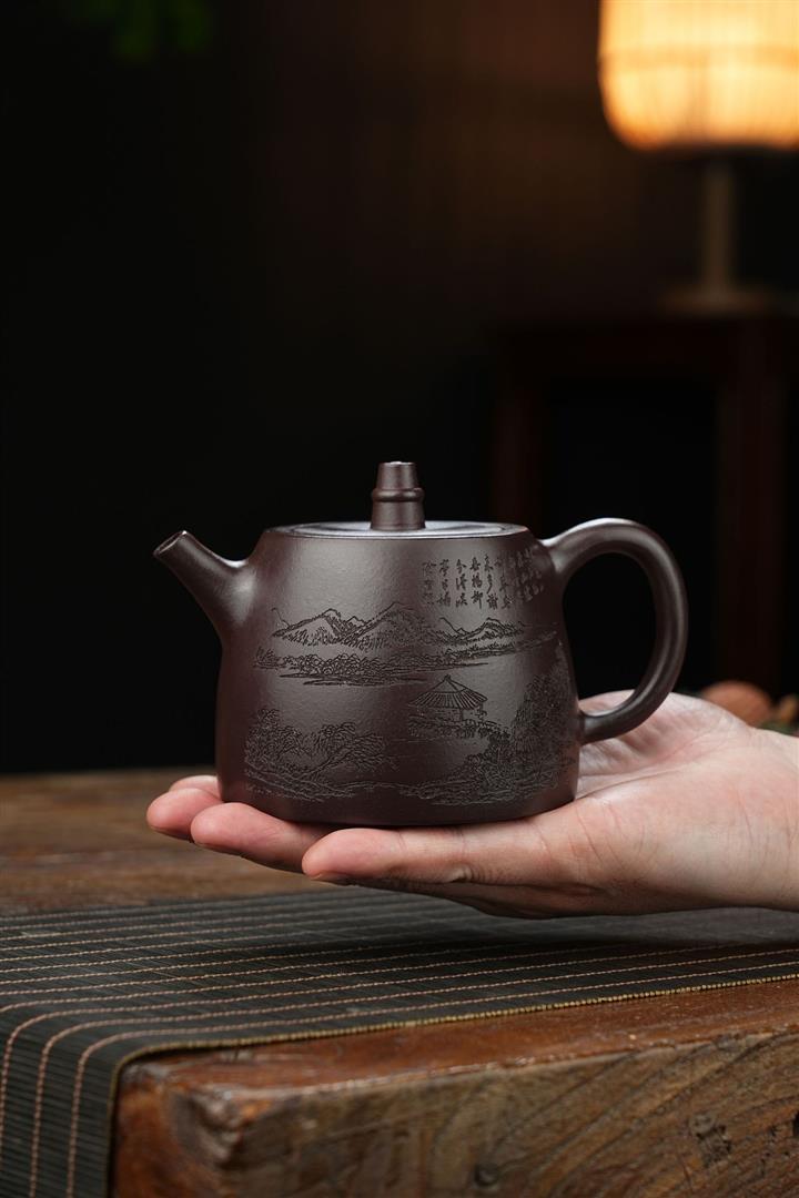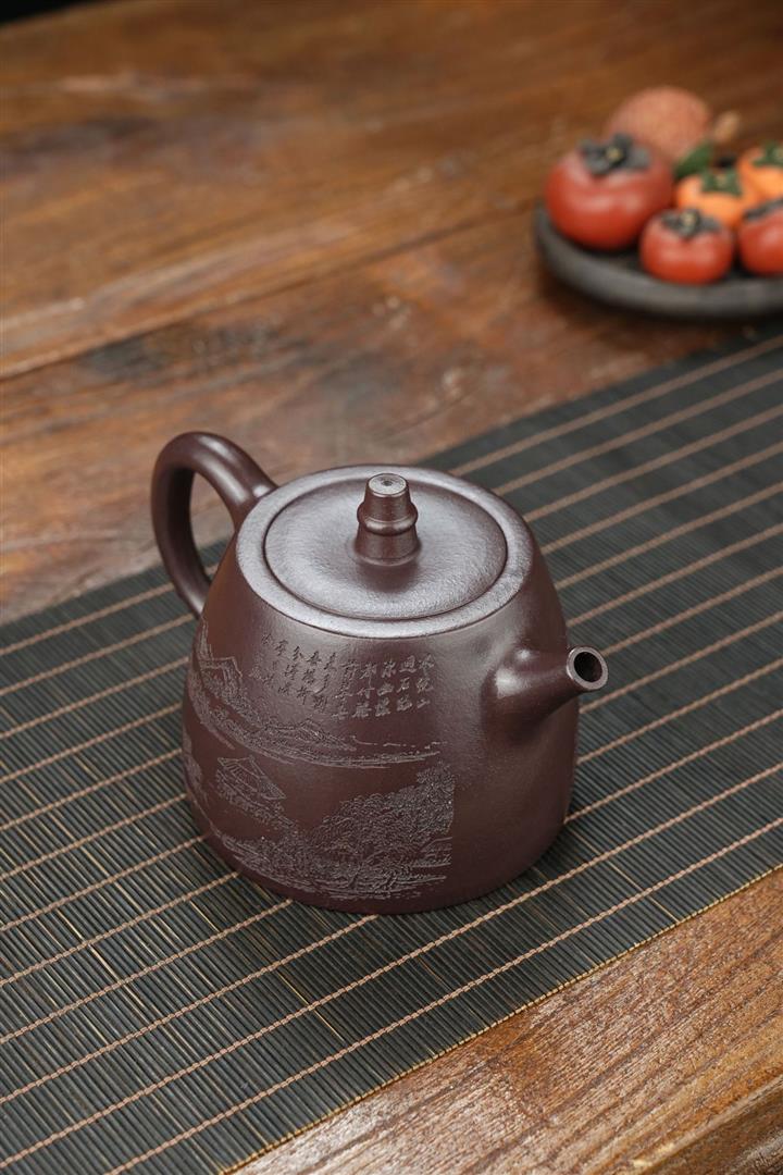 原礦墨綠泥手工刻畫山水仿古茶壺POT6930