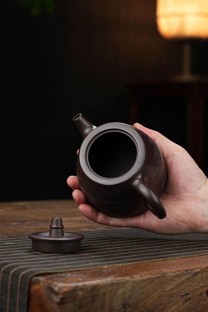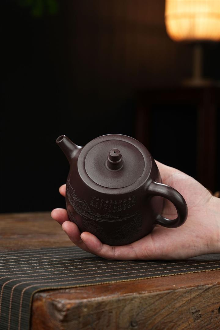 原礦青段泥純手工刻繪周盤茶壺POT6924