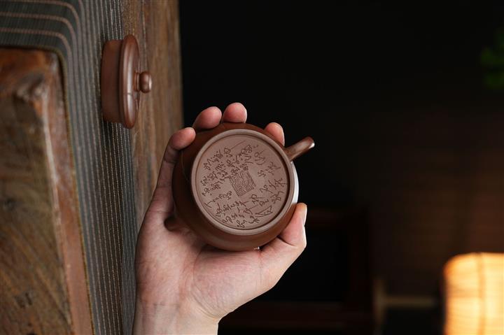 原礦青段泥純手工刻繪周盤茶壺POT6924