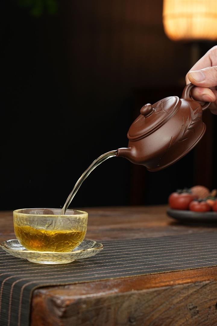 【泥料特點】砂土氣重,似淳實農民,日久使用,漸露鋒芒,養成變化,溫潤莊重。紫砂是壹種雙重氣孔結構的多孔性材質,氣孔微細,密度高。用紫砂壺沏茶,不失原味,且香不渙散,得茶之真香真味。紫砂使用越久,壺身色澤越發光亮照人,氣韻溫雅。紫砂壺長久使用器身會因撫摸擦拭,變得越發溫潤光澤