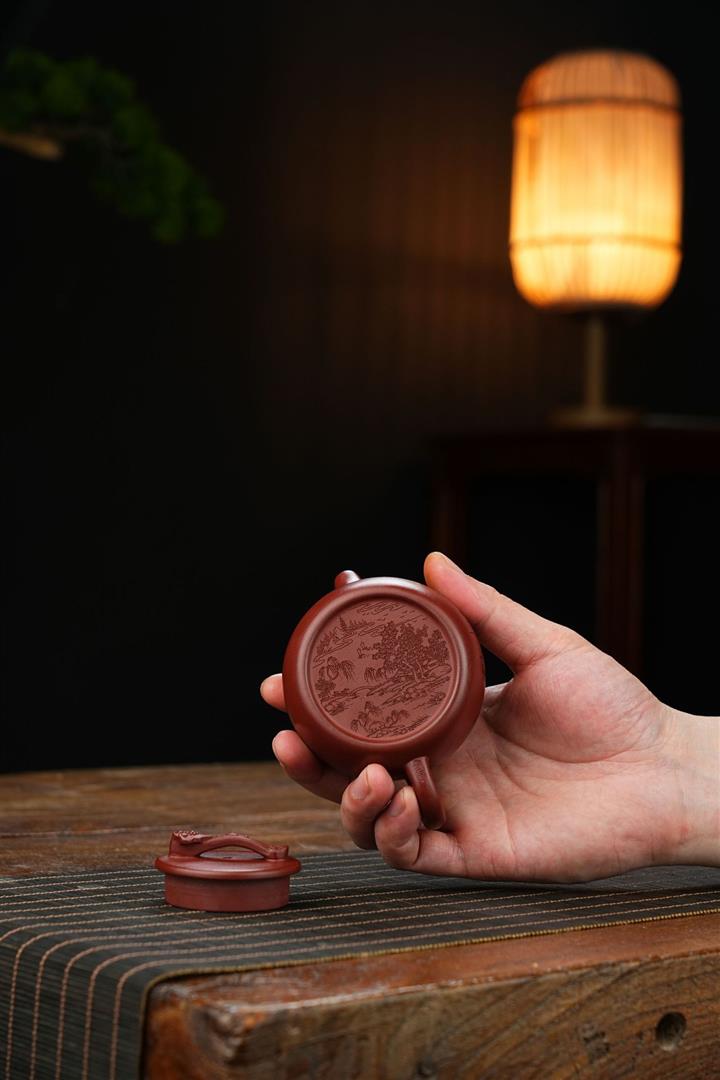 原礦青段泥純手工刻繪周盤茶壺POT6924